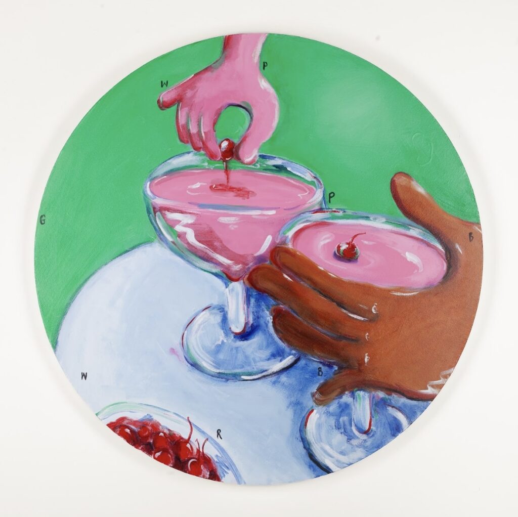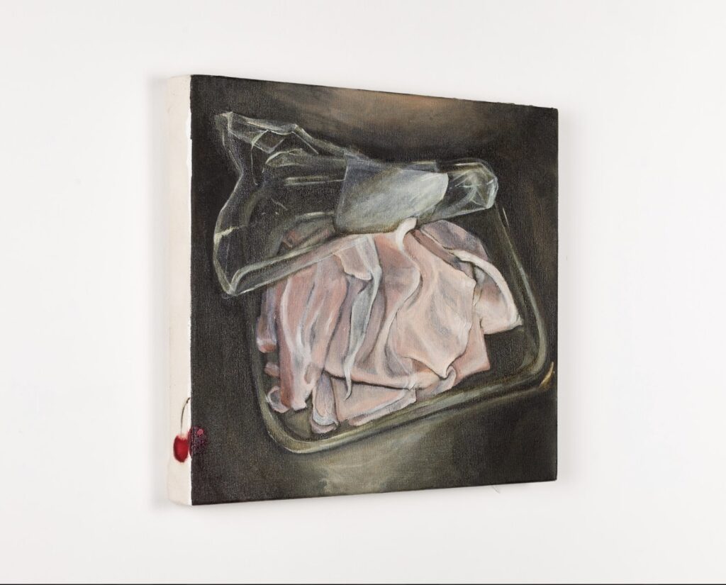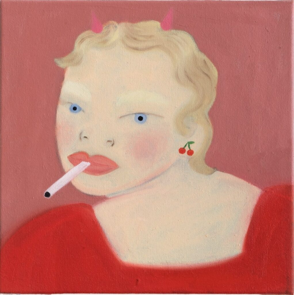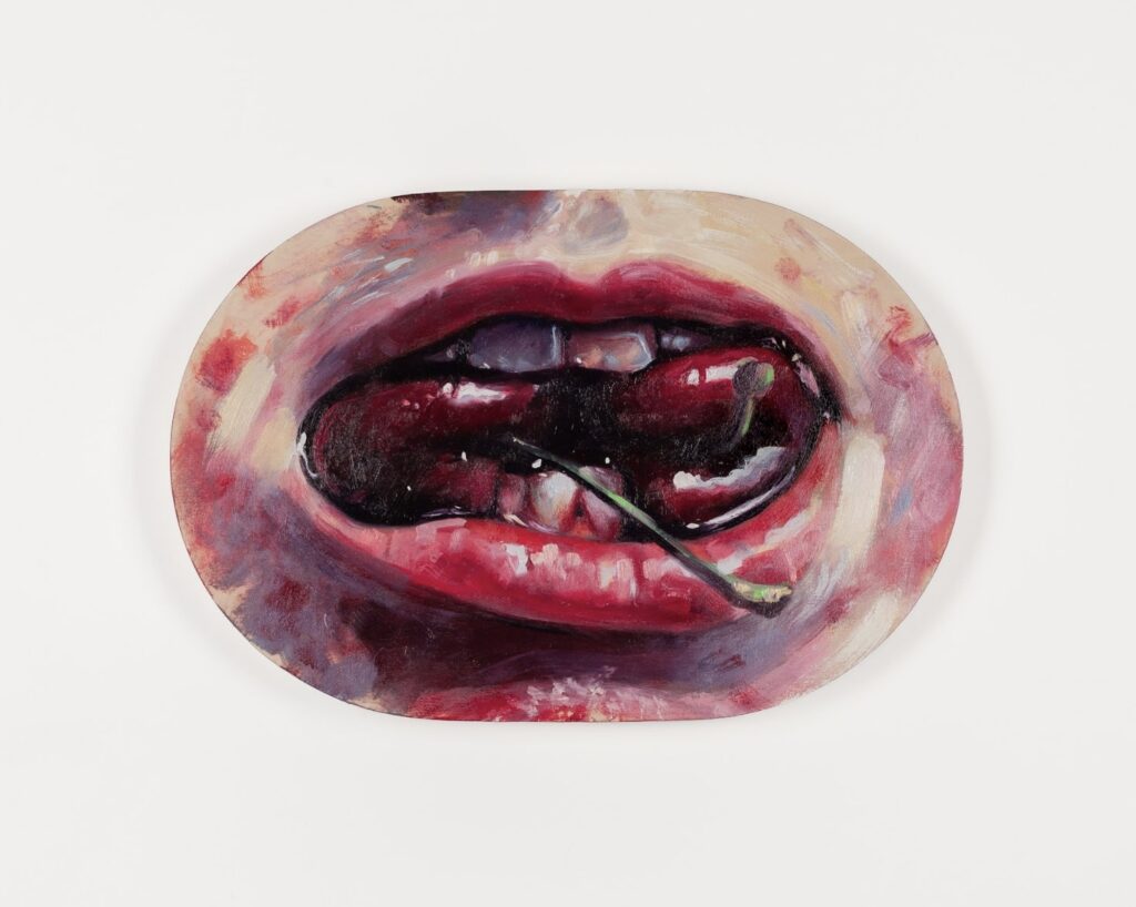Cherry Bomb! is this intrusive thought I’ve had for a while, when I saw Kate Burling’s cherry paintings and I said to her and Olivia Sterling, ‘oh my god, you guys should do a cherry show’. And then I pitched it to other artists, and they were really into it, and so Cherry Bomb! grew to be Kate Burling, Douglas Cantor, Anna Choutova, Nettle Grellier, Gosia Kołdraszewska, Lydia Pettit, Olivia Sterling and Sophie Vallance Cantor. Together, their interpretations of the cherry and its symbolism created this beautiful story about sweetness and rebellion, and the nausea and nostalgia that come along with them. The show also marks the first birthday of miłość, so come along to the opening (12 Sept, 6-9pm) to celebrate with us and have some Polish cherry vodka!