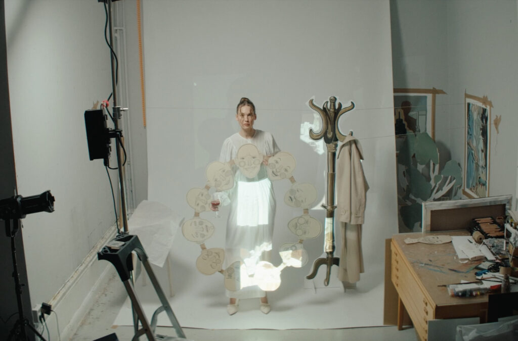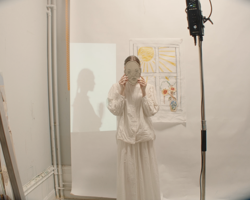 Alice Herbst builds worlds using imagination and studio materials like cardboard, projections, shadows, and light. These scenes feel familiar but reveal their flat, symbolic nature. The hands-on, time-intensive process reflects her dedication to analogue craft and offers a playful, almost therapeutic way to shape and transform narratives. She often appears in her own scenes, disguised in costume, behind a mask, or confronting the viewer, exploring how identity can shift and perform itself.