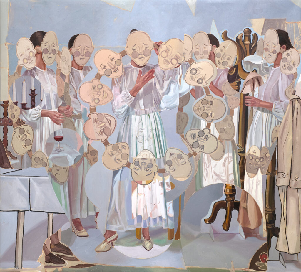 It is funny to me that some of the props seem to become a little more prone to an “aura-effect”. Visitors to the studio often notice certain props and exclaim “Oh, that is the one prop in so many of your paintings.” while pointing towards a specific flower or mask. It was a very unexpected outcome, some people clearly pay a lot of attention to them.
