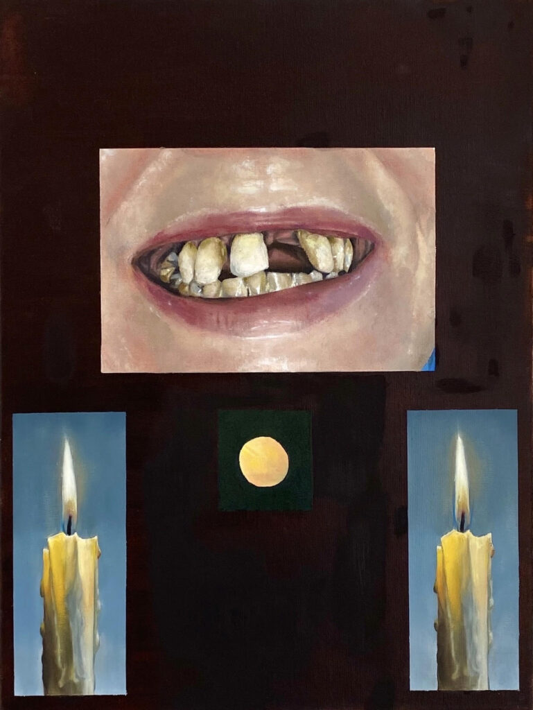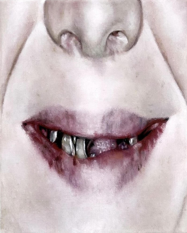 Jamie: I’m not sure it’s strictly true to call them misreadings. I’ve come to accept that you have no real dominion over how a work is read; it refracts differently in each person, and I’ve found a certain comfort in ceding that control once the work is out of my hands. I think every reading is valid. I also purposefully introduce a degree of obfuscation into my work, which intensifies this. That said, my ongoing series of mouth paintings is a useful example to discuss here, as they are often interpreted through a horror lens, because they are undoubtedly unpleasant to look at.