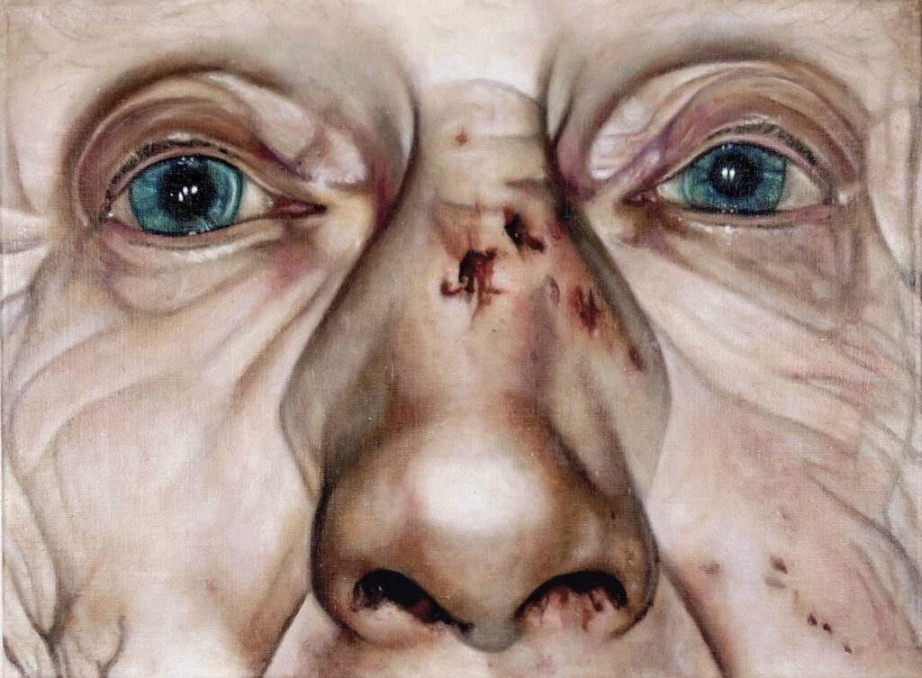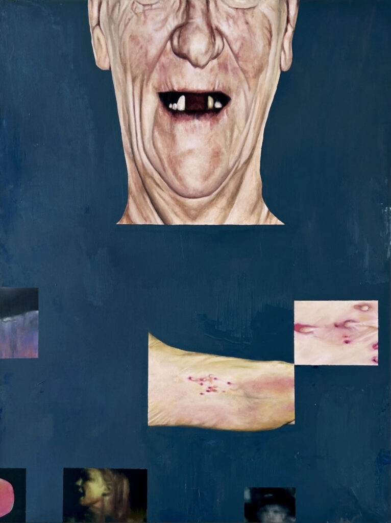 I’m especially interested in depicting the aspects of the body that in some may provoke a sense of shame; blemishes, rashes, missing teeth, because they can become stark reminders of our vulnerability and the instability of identity itself. Also, there’s nothing more satisfying to paint than a blister.