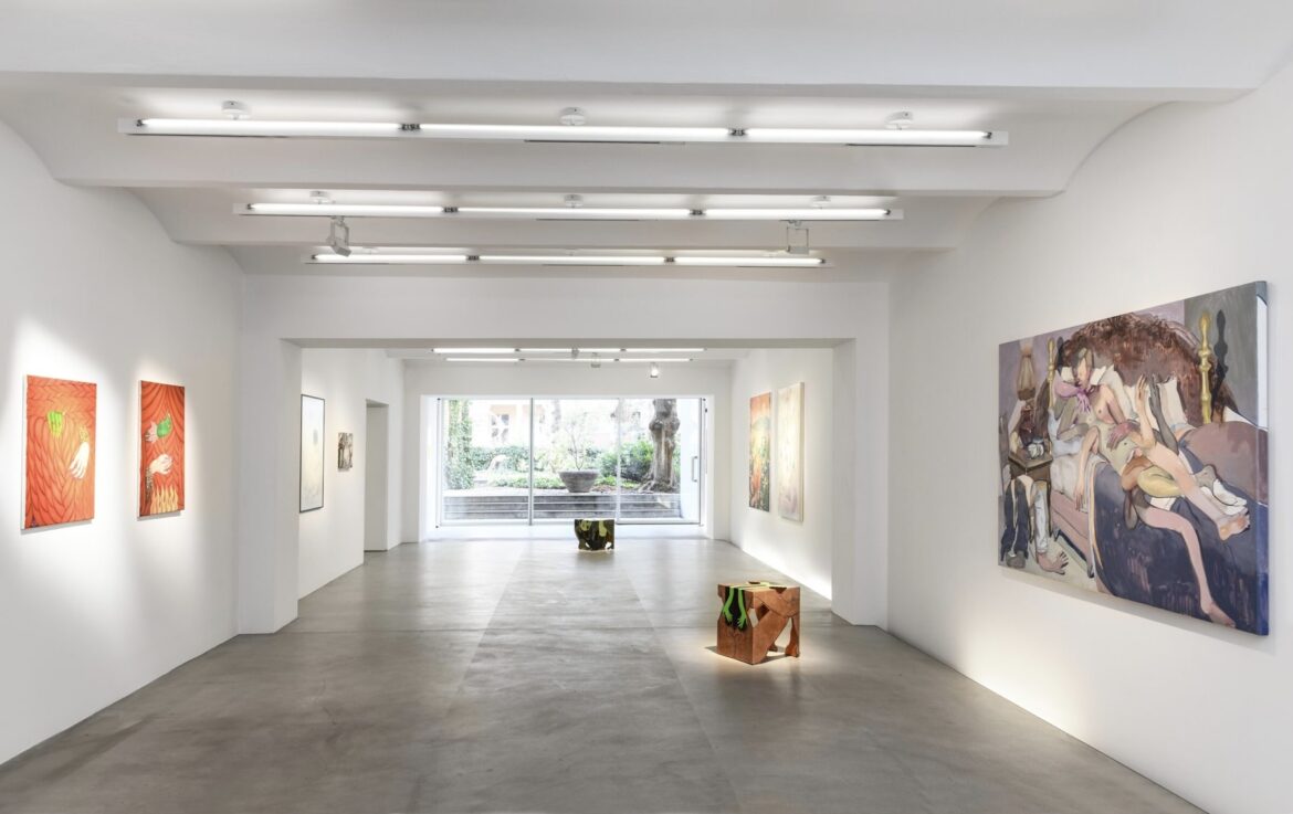 In her diary entry for January 5, 1965, Susan Sontag advised herself to think of a novel in cinematic terms, considering a close-up, medium-shot, and a long shot. In this messay, I will try to do the same with the exhibition while keeping it transparent enough for the viewers who can make sense of the show by accompanying images. Three artists presented in Trust Issues are Saelia Aparicio, a multidisciplinary artist based in London, and two painters – Mexico City-based Gonzalo Garcia and Tbilisi-based Rusudan Khizanishvili. All three capture contemporary anxiety, control society, manipulation, and hope – all characteristics of our post-truth reality.