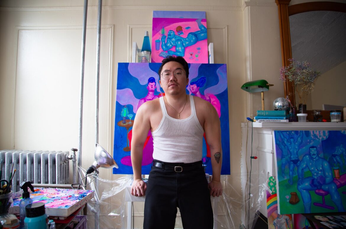 Today we would like to introduce you to Justin Yoon, a Brooklyn based painter who was born in Los Angeles and grew up both in LA and Bundang, South Korea. Early childhood memories of American junk food, late night old Hollywood movies on the TV, and listening to jazz in the car with his family on long drives significantly affected him to create a world of romantic melancholia, synthetic colors, and casual lostness of being.