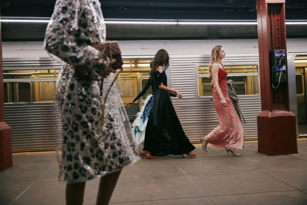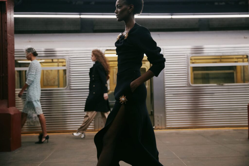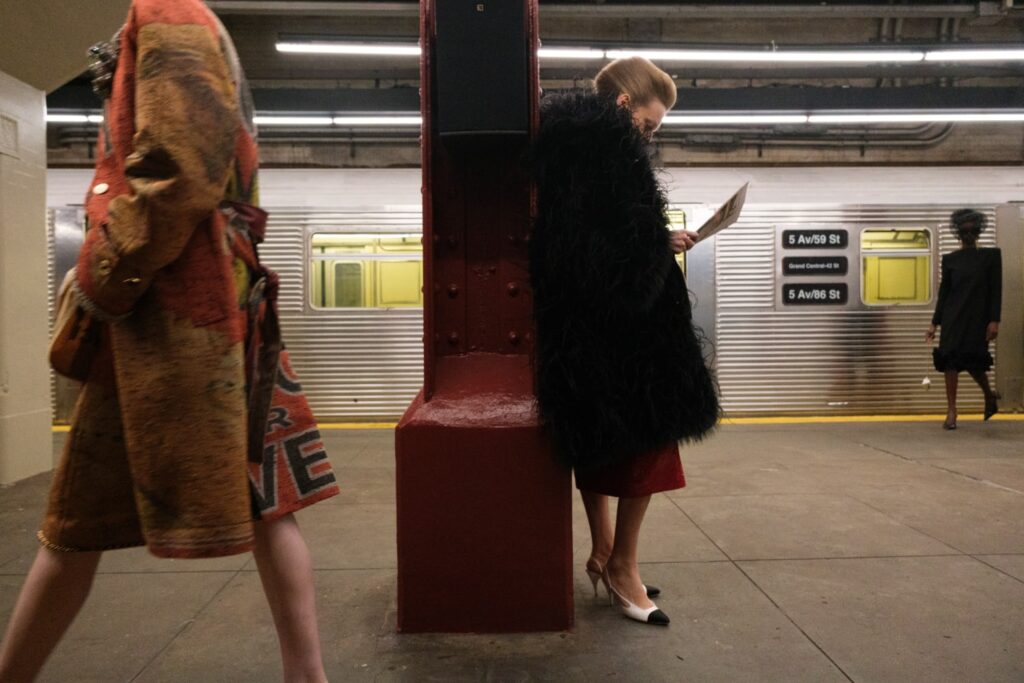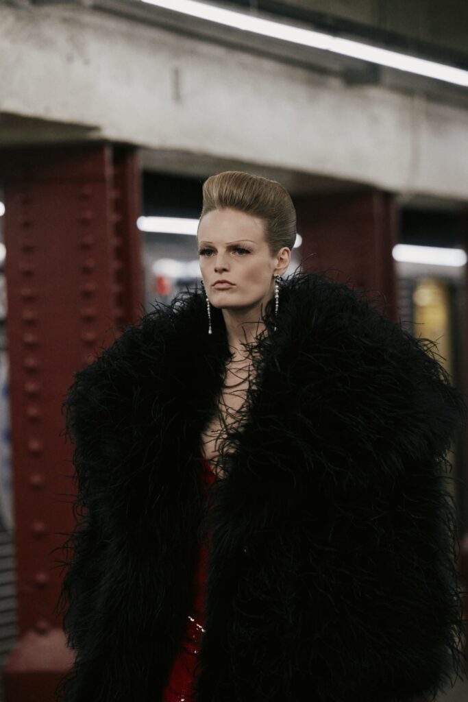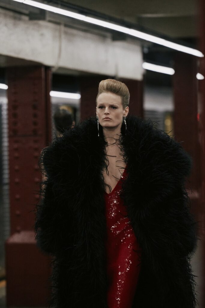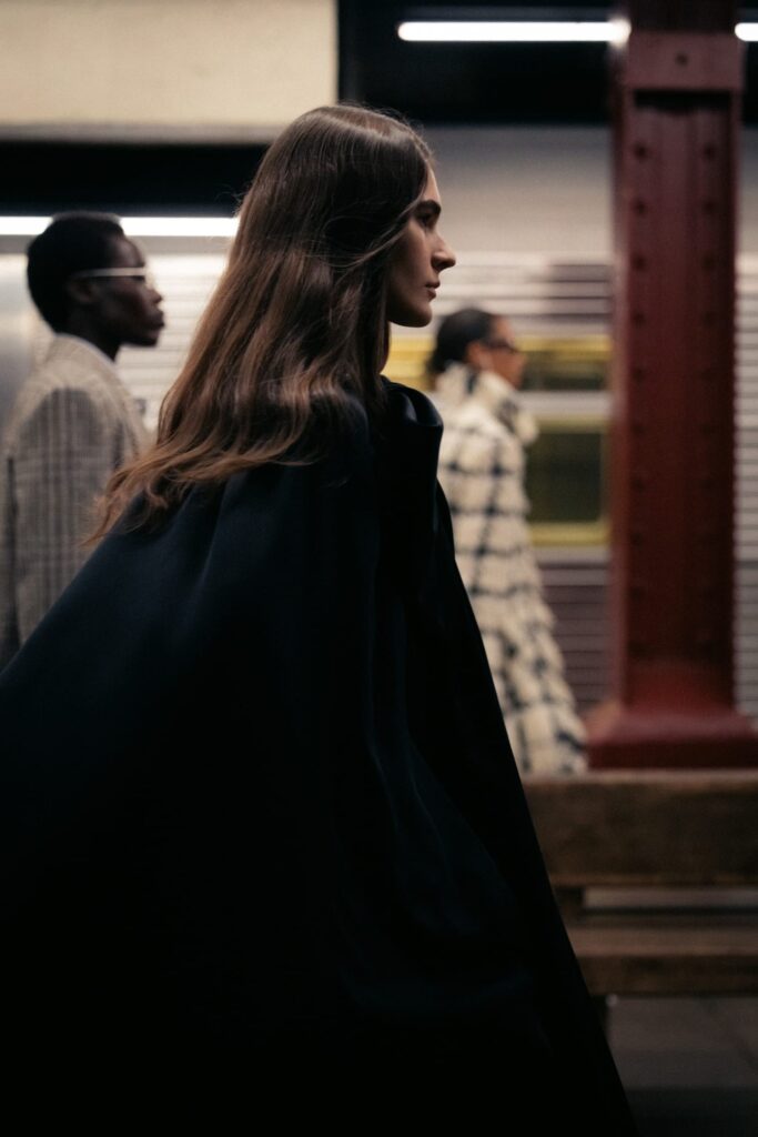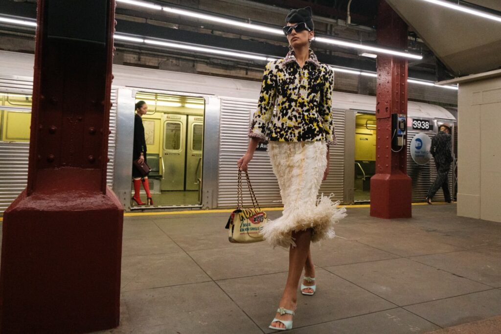 The Maison paired the physical presentation with a new digital platform, giving the public a deeper look into the collection’s textures, references, and the artisans who bring Métiers d’art to life. But the heart of this year’s narrative lies in the subway itself — that democratic artery where students, activists, politicians, tourists, and teenagers share the same fluorescent-lit tunnels.