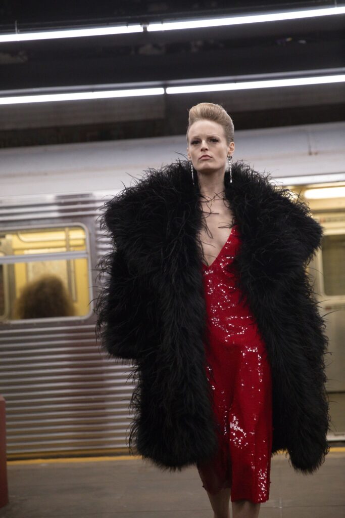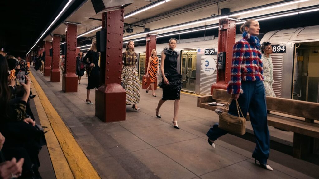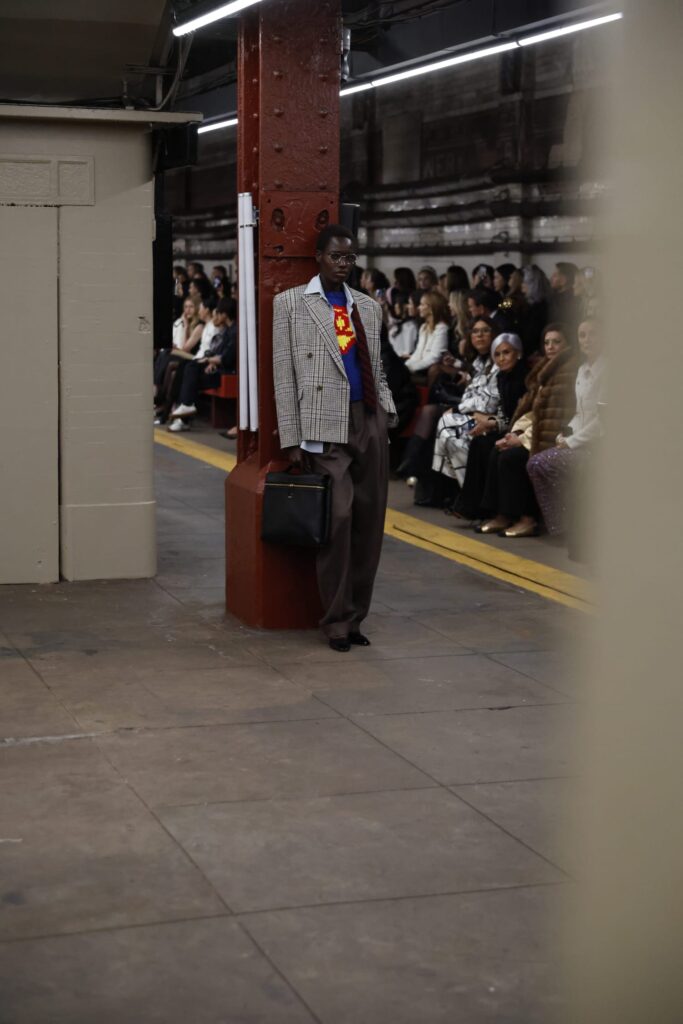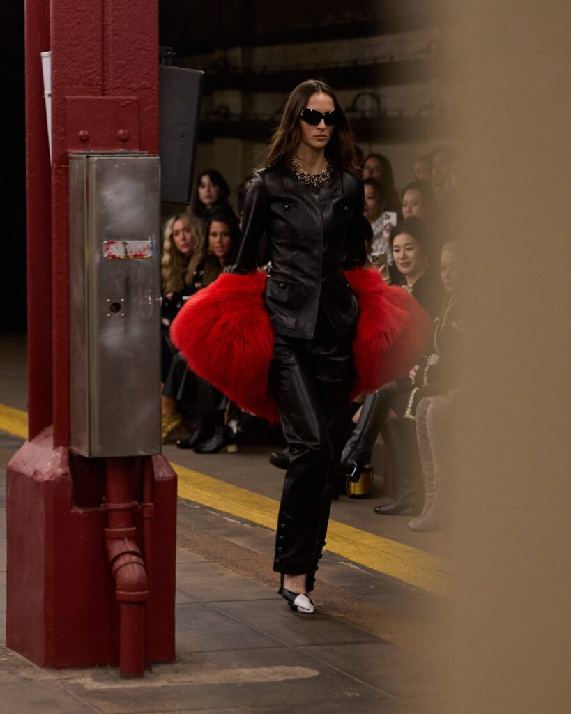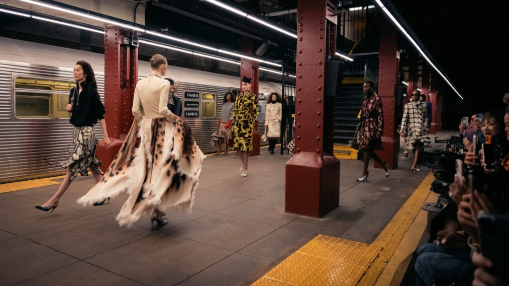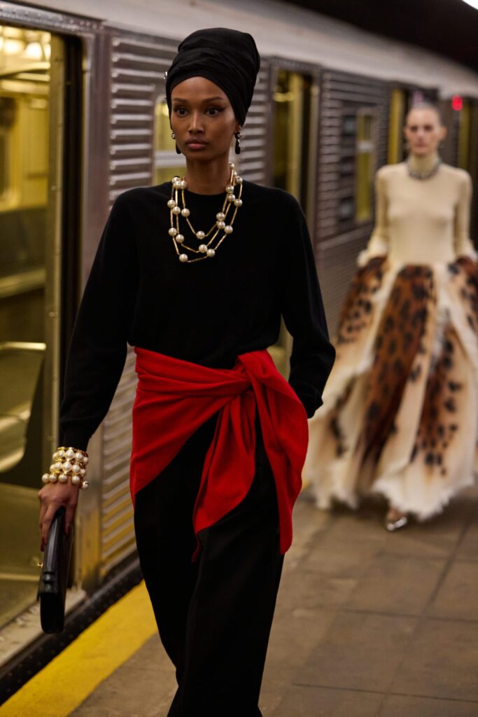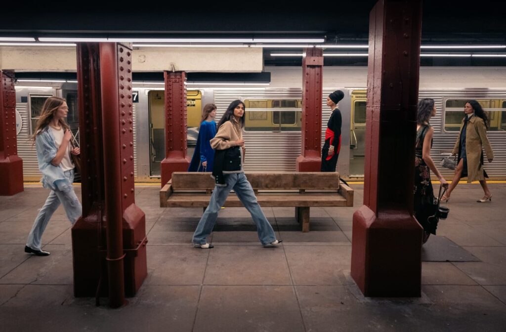 The Maison paired the physical presentation with a new digital platform, giving the public a deeper look into the collection’s textures, references, and the artisans who bring Métiers d’art to life. But the heart of this year’s narrative lies in the subway itself — that democratic artery where students, activists, politicians, tourists, and teenagers share the same fluorescent-lit tunnels.
