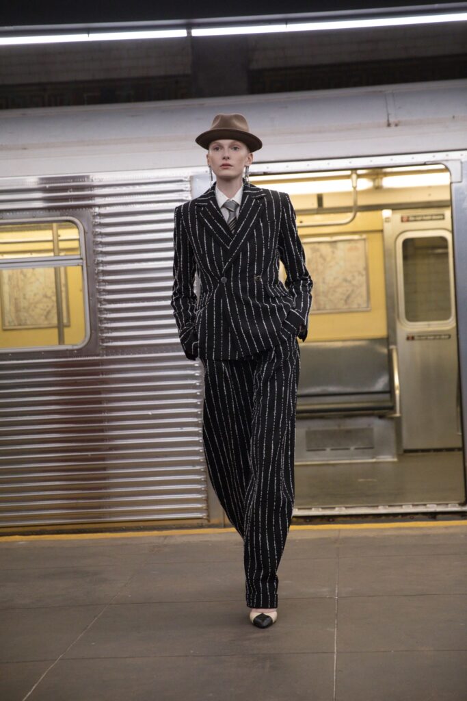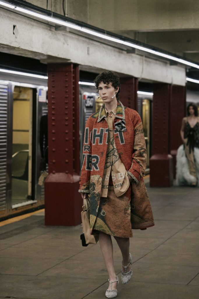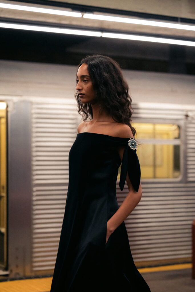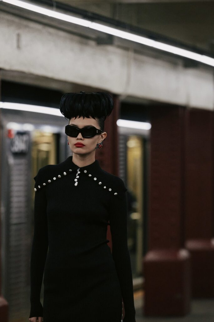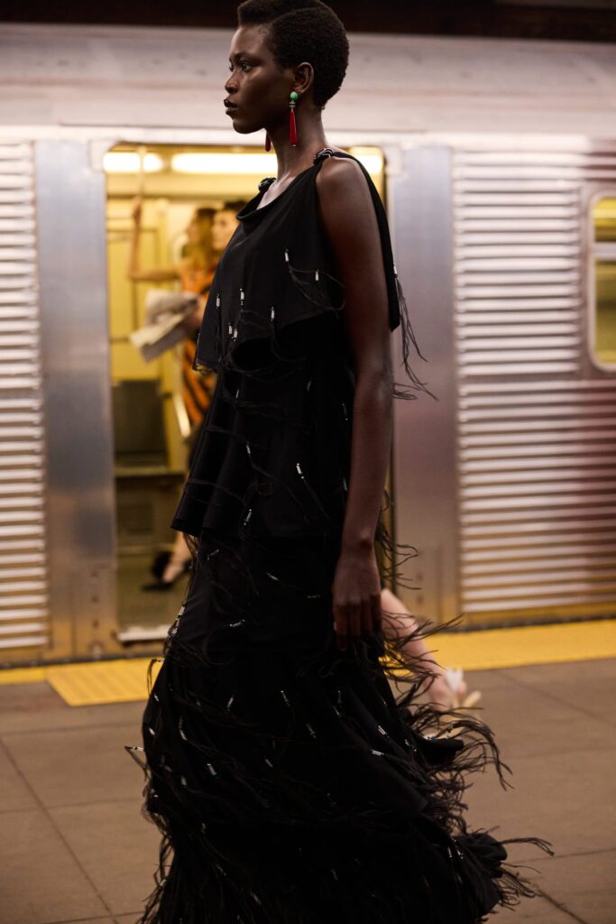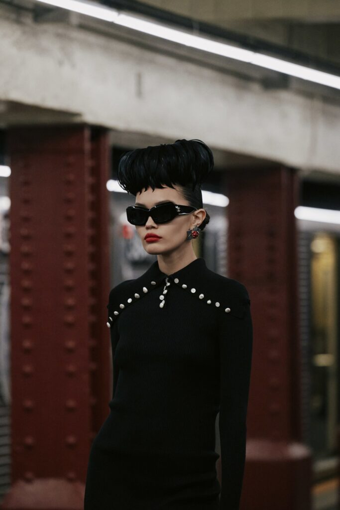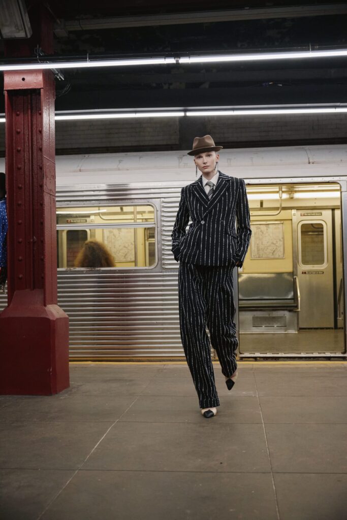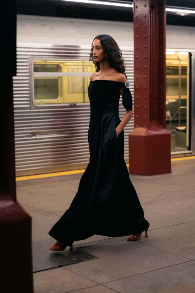 This season, that heritage collides with subway iconography: a reminder that couture techniques don’t have to sit on pedestals — they can move, rush, merge, and breathe like the city itself.