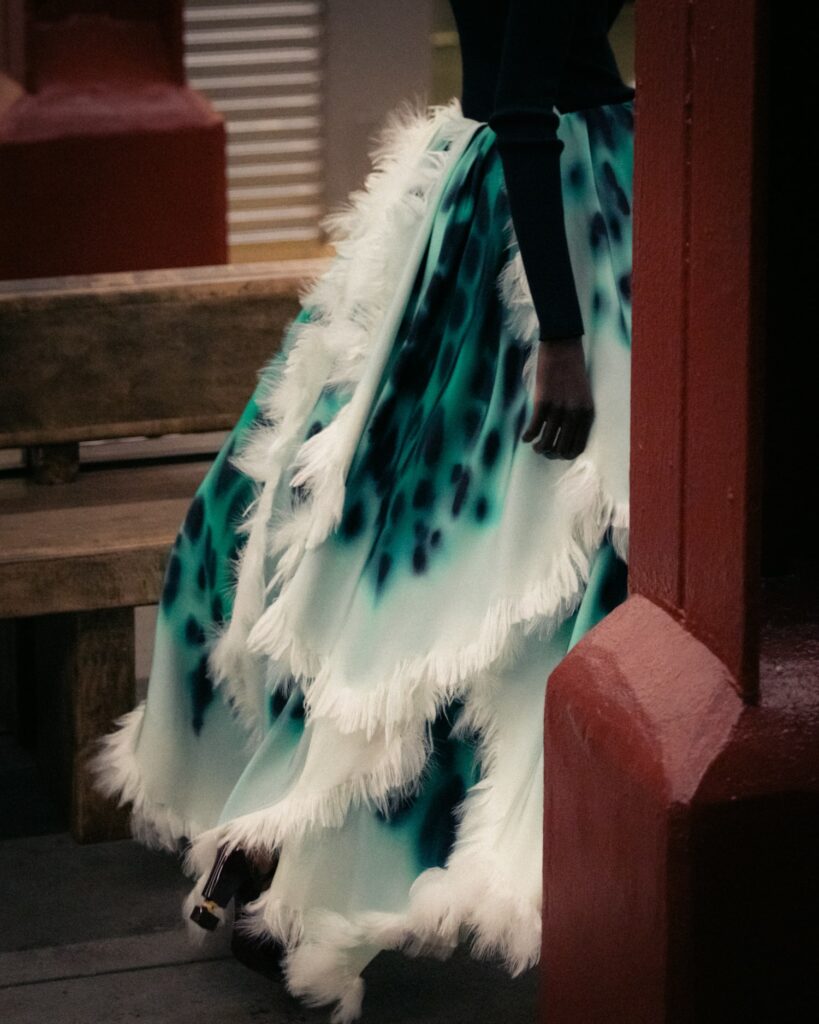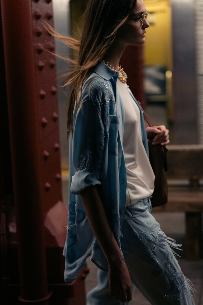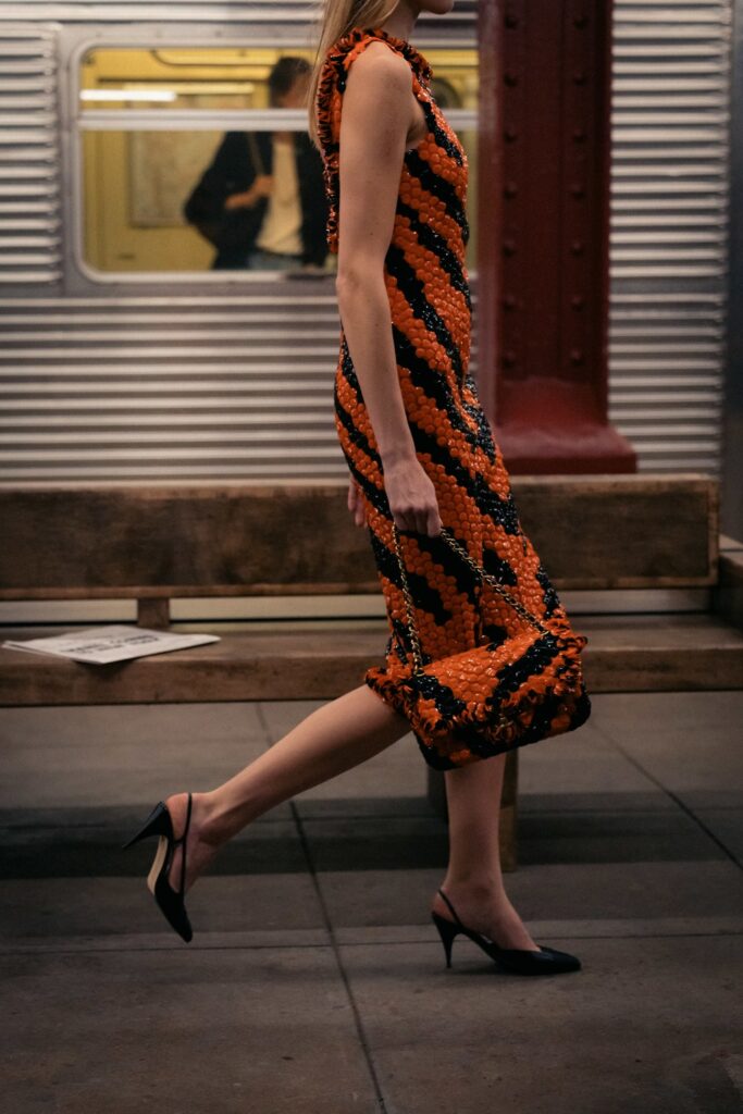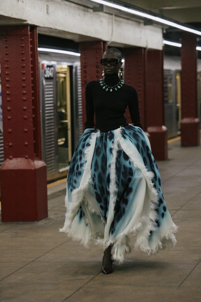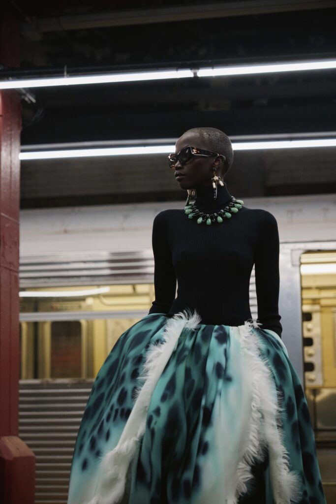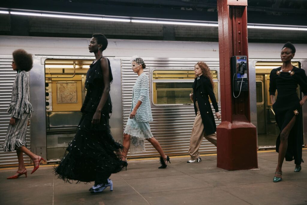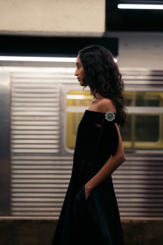 This season, that heritage collides with subway iconography: a reminder that couture techniques don’t have to sit on pedestals — they can move, rush, merge, and breathe like the city itself.