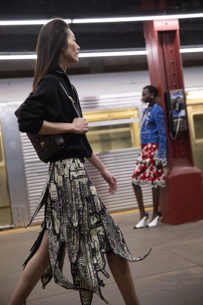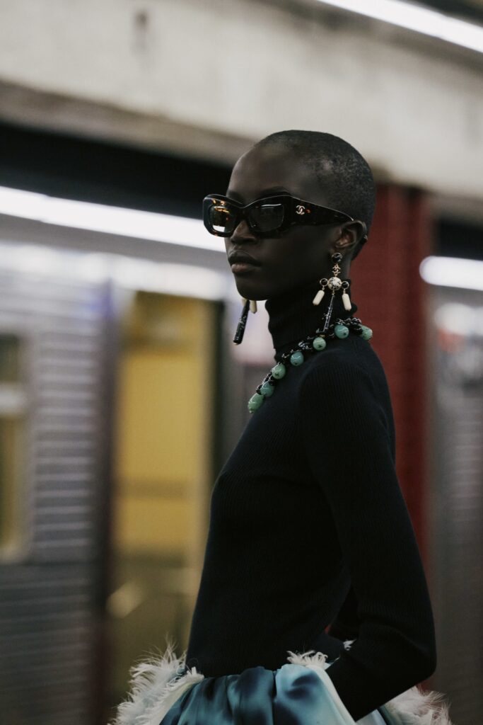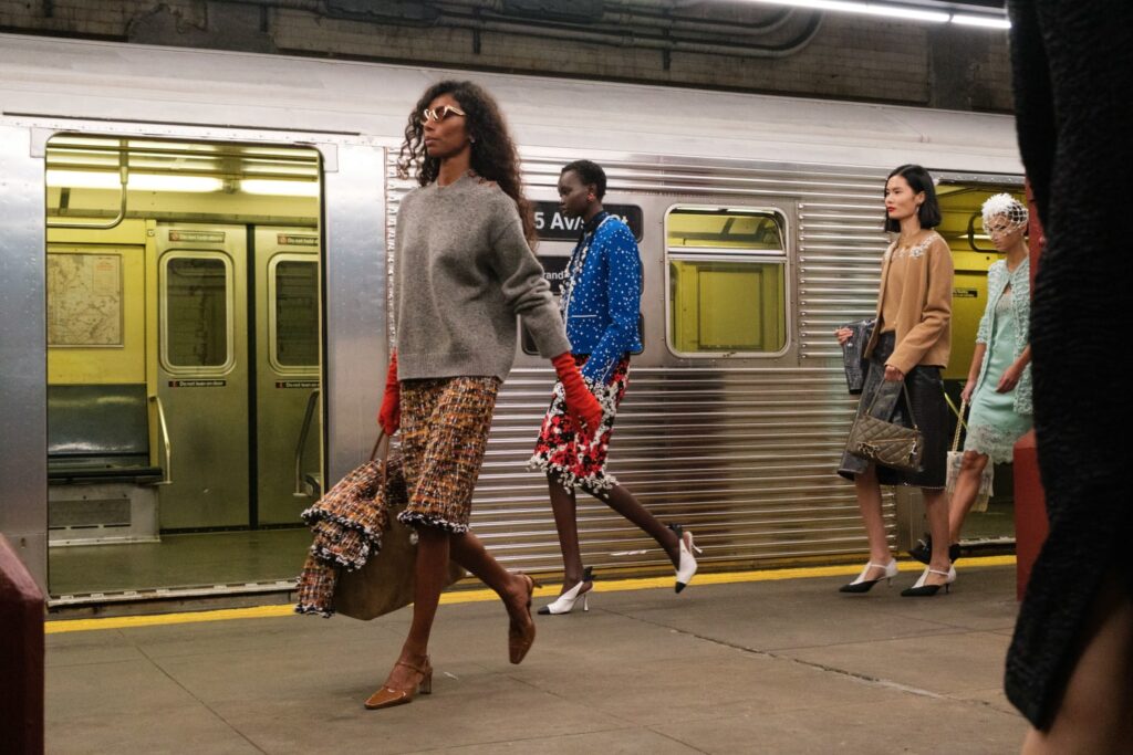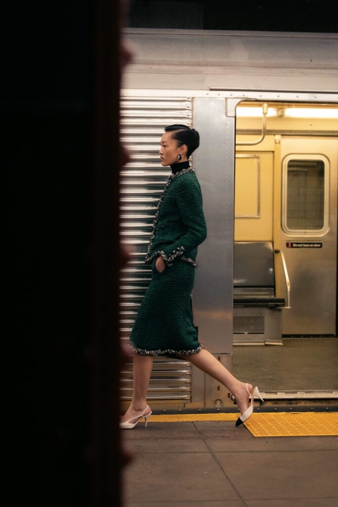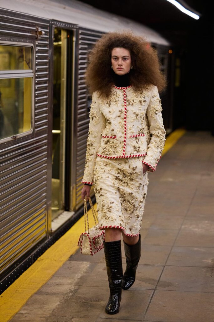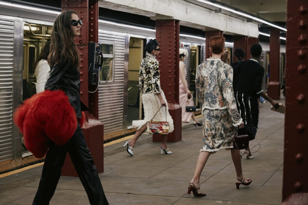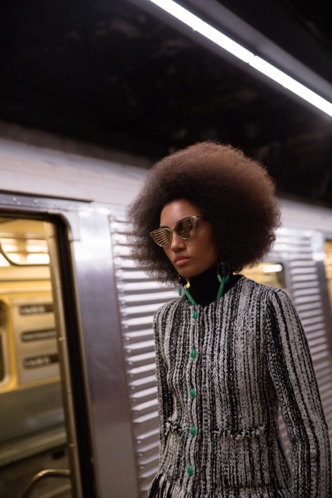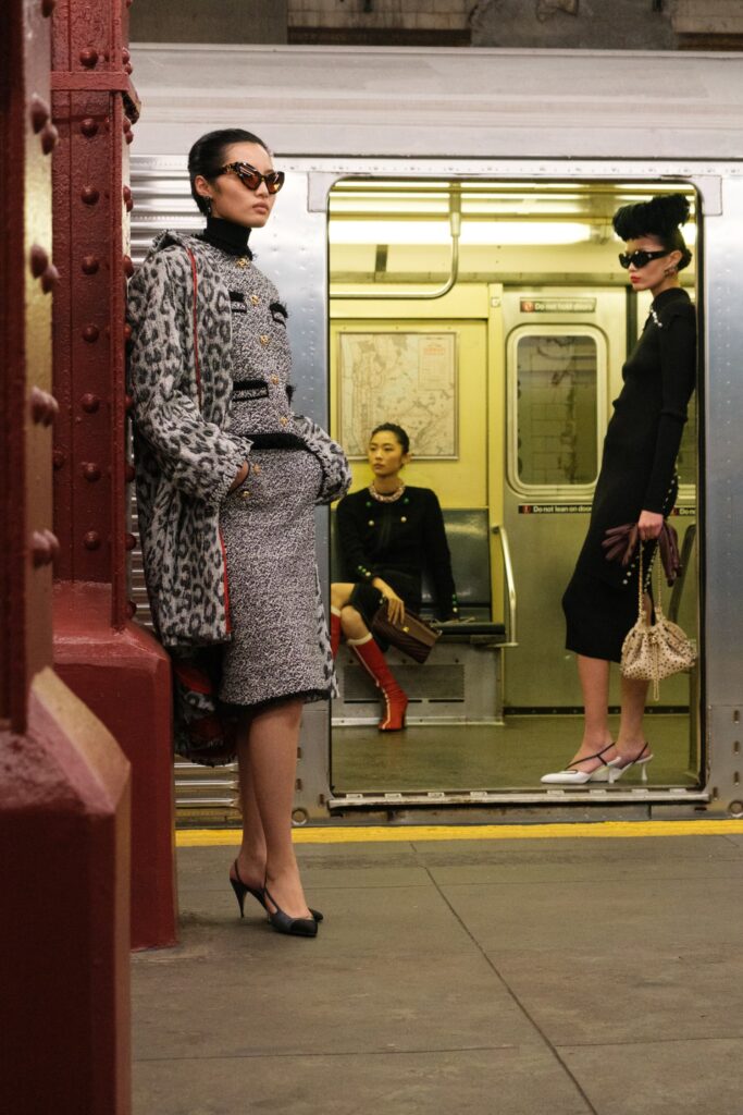 CHANEL describes the subway as “a place full of enigmatic yet wonderful encounters, a clash of pop archetypes… where everyone has a destination and each person is unique in their style. Like in the movies, they are the heroes of their own stories.” It’s this cinematic, character-driven vision of New York that shapes the collection: a tribute to the city’s talent for turning anonymity into mythology.