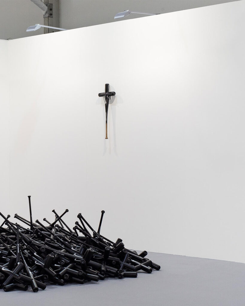 With over a decade in the creative industry as a freelance creative director, Enrique channels his marketing expertise into art that doubles as social commentary. His practice spans spray-painted canvases, sculptures, and installations, often recontextualizing everyday objects—Nike logos on BDSM gear, luxury goods morphed into provocative forms—to critique society’s fetishistic relationship with brands. Exhibitions like New Painting (2020, Singapore) and Brand Love (2022, Singapore) showcase his knack for blending humor, absurdity, and critique, while his anonymous Instagram project Dick Worldwide (2019) pushed boundaries with transformed luxury items.