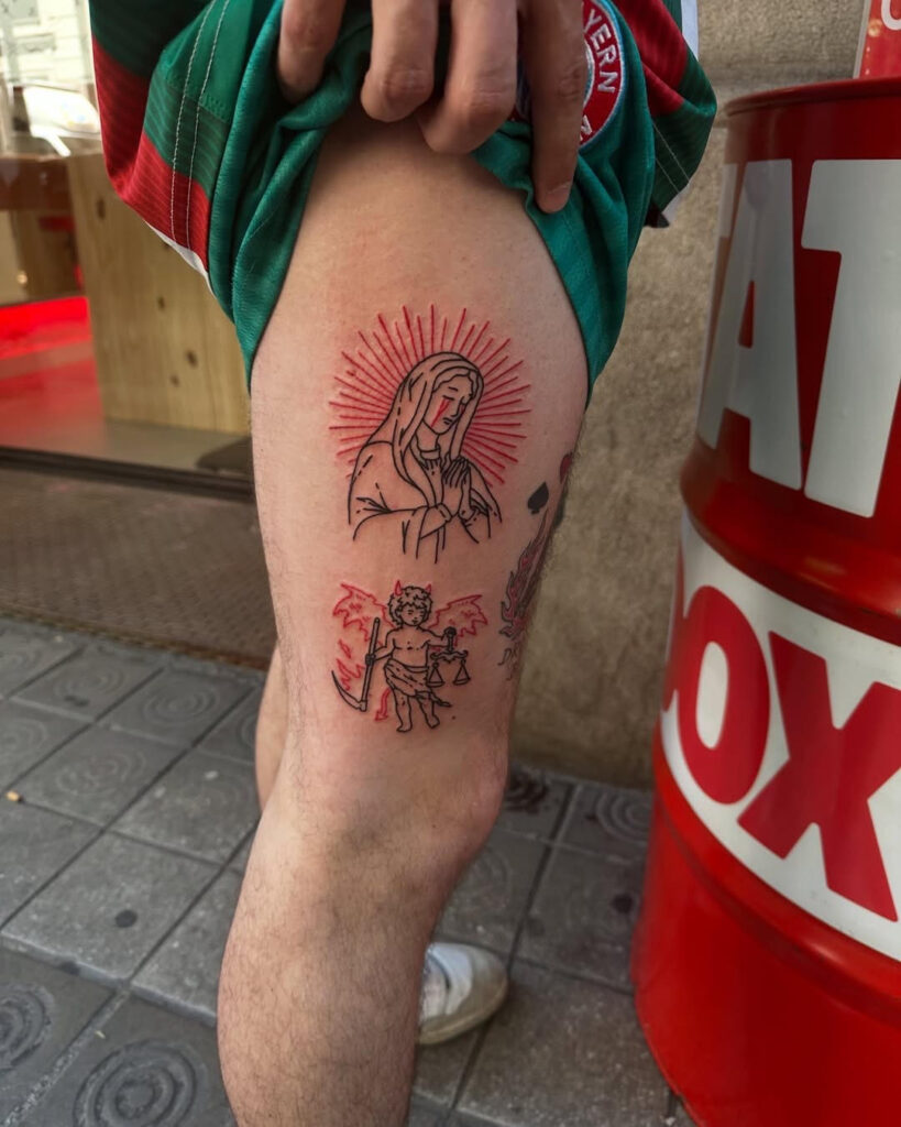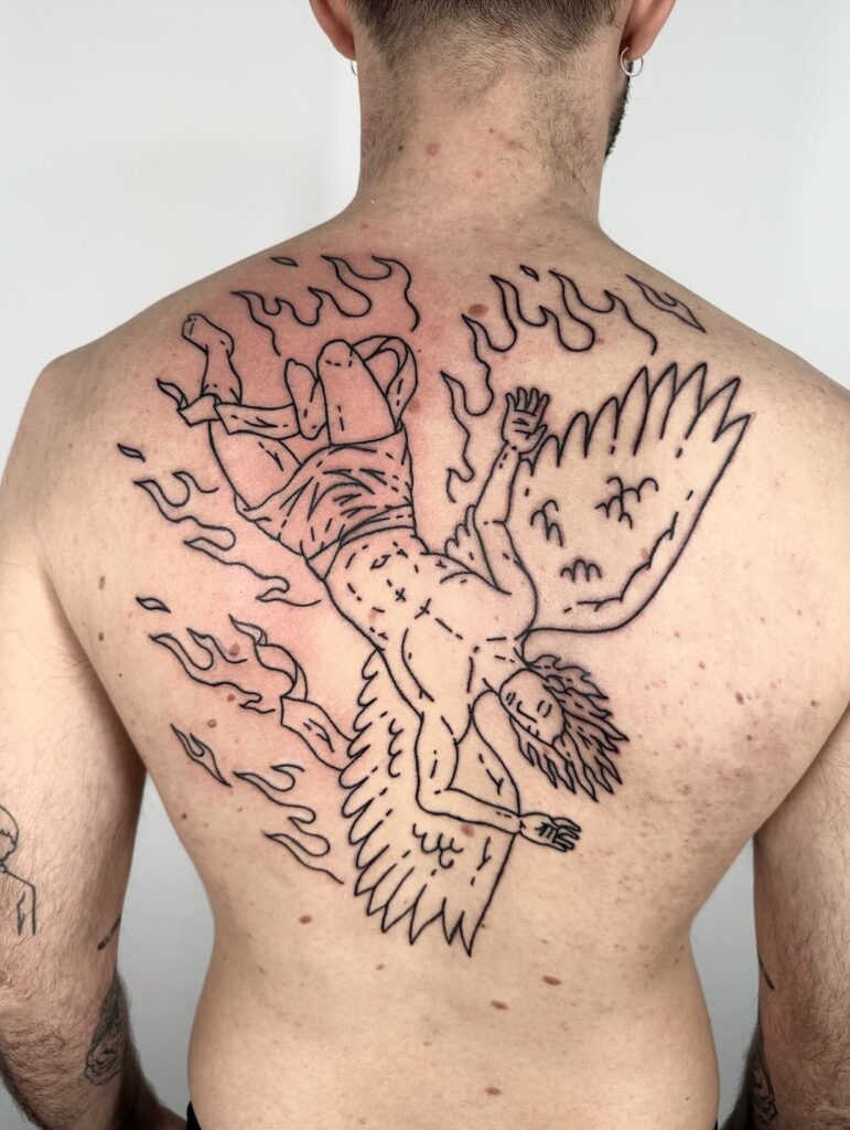 Fernando: Honestly, if I hadn’t studied restoration, I probably would’ve never become a tattoo artist. During my studies, I realized something interesting: when restoring a damaged artwork, you first have to create a mapping of it. That means retracing the entire piece in a schematic, line-based way, marking areas with issues like cracks, missing parts, or wear. So we were constantly redrawing ancient works using clear, precise linework as part of the restoration process. That exercise, tracing and observing, slowly evolved into what would later become the foundation of my tattoo style. It was unexpected, but everything crossed paths at the right time. University also gave me a deep knowledge of art history, symbolism, and meaning. One of my favorite subjects was iconology, which definitely helped shape and solidify who I am today and how I understand visual language.