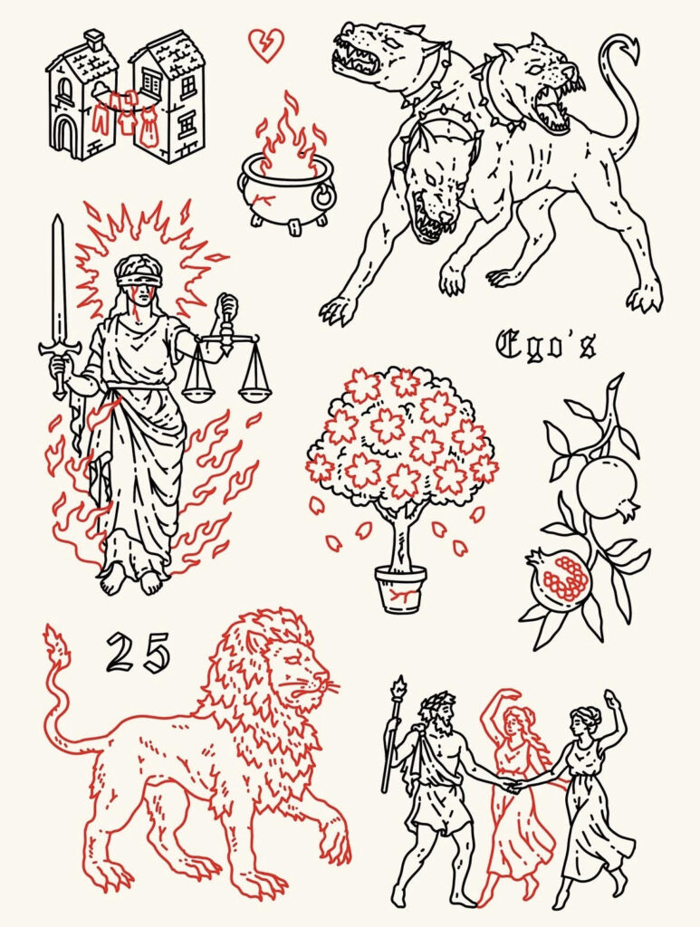 Fernando: It really depends on each client. I’d say most of the time, people choose a flash I’ve already drawn, which makes things easier on a practical level. But when it comes to custom requests, sometimes clients have a personal memory or experience they want to express through a tattoo. That can be more complex. If it’s something symbolic, like a myth, an object, or a historical reference, it’s easier to translate visually. The real challenge comes when what they want to express is more abstract, like a feeling, a memory, or an emotional something. In those cases, symbolism becomes my best tool to help give shape to something that’s otherwise intangible.