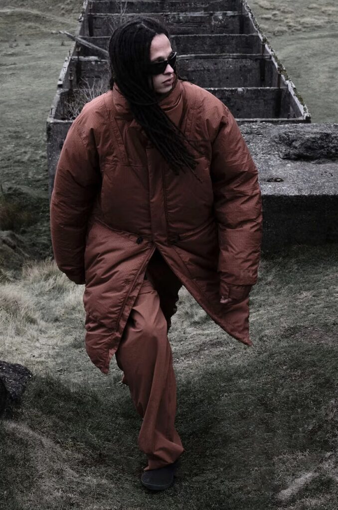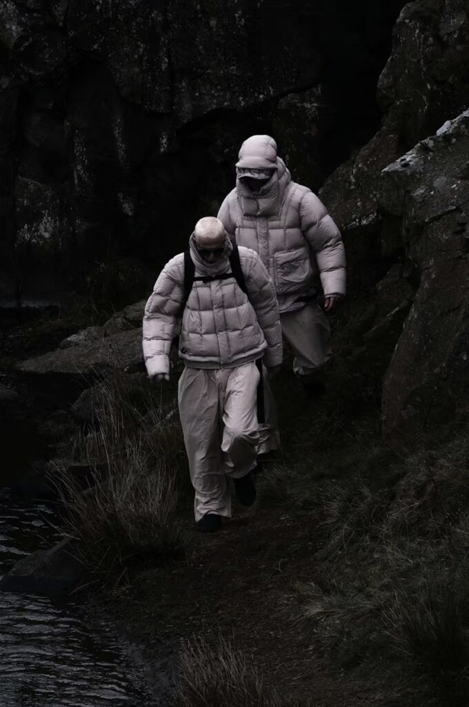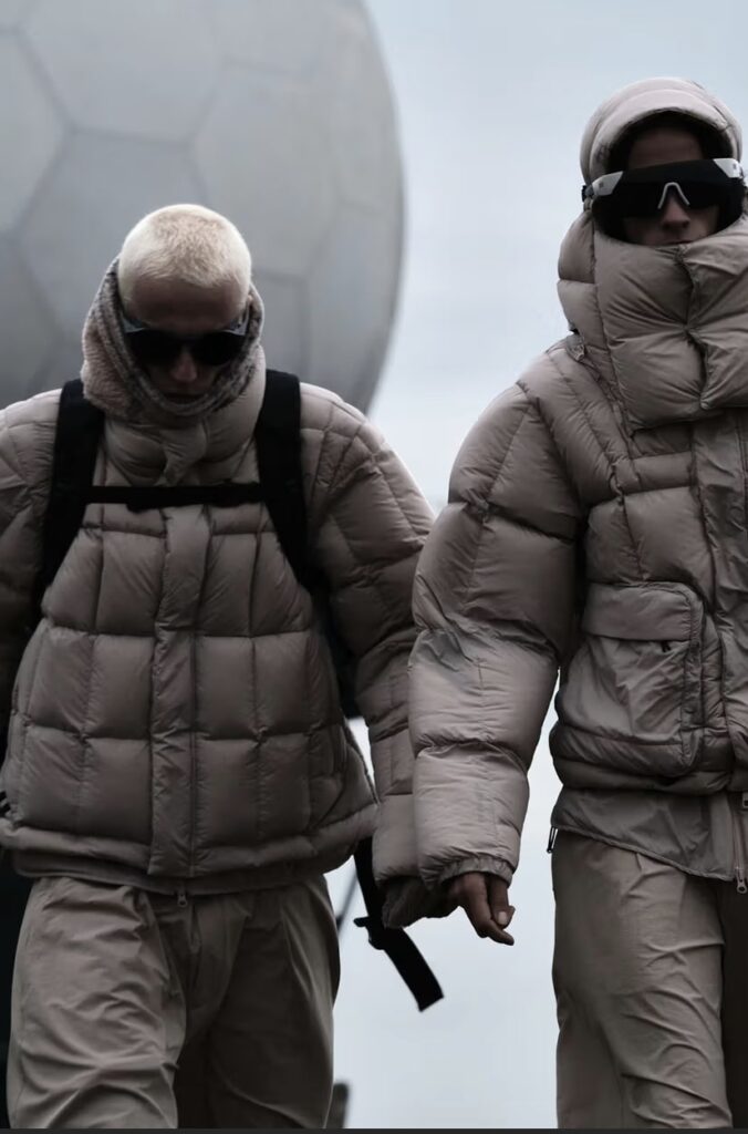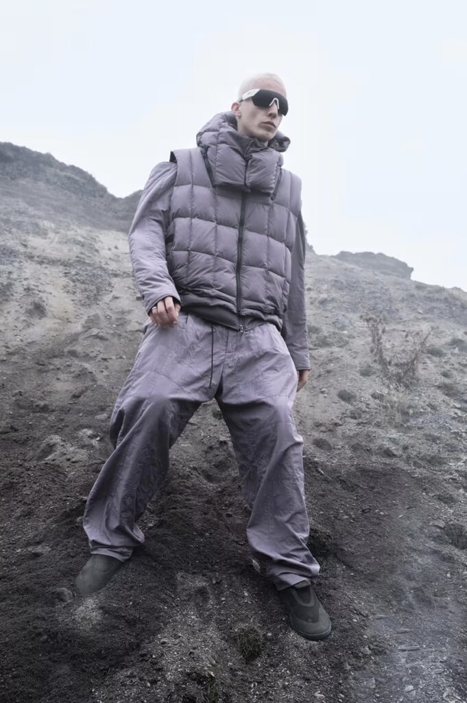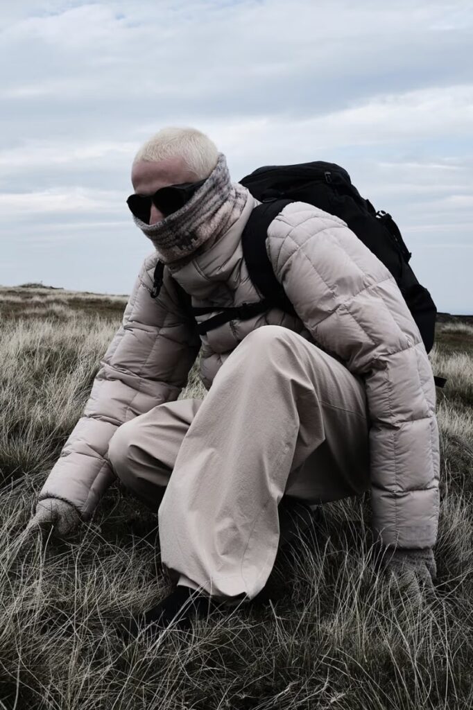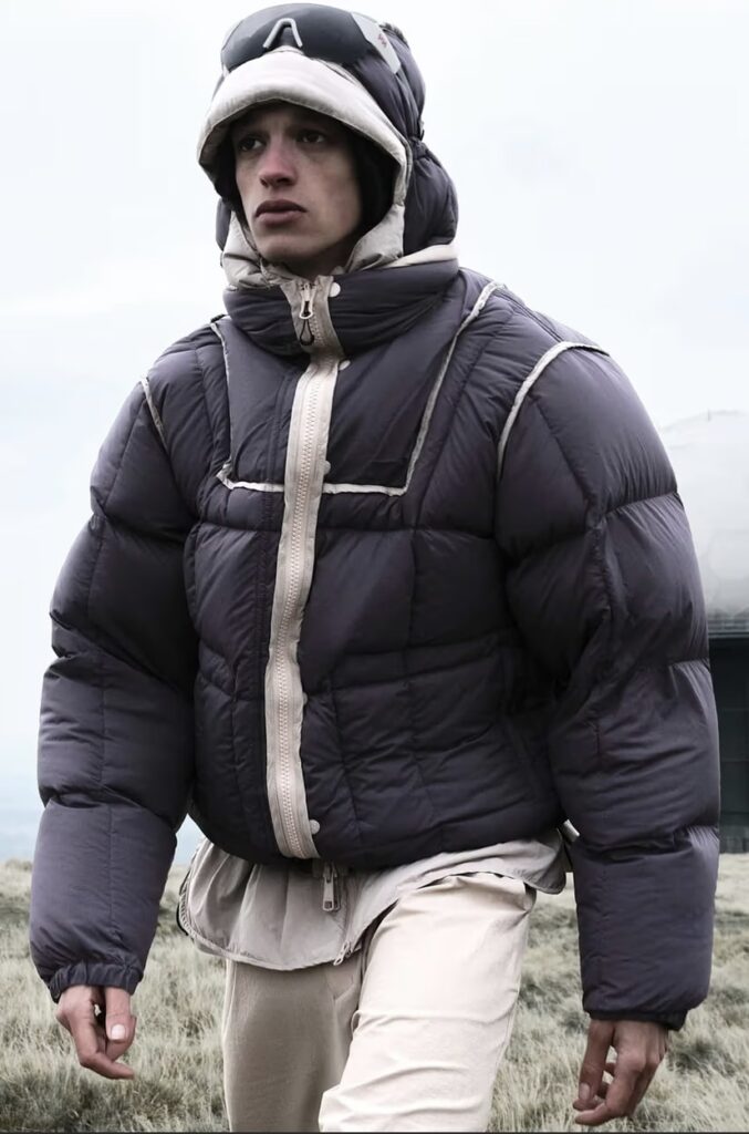 The new season unfolds in desert-inspired hues and structured silhouettes that echo both urban minimalism and mountain utility. Its centerpiece, the Modular Padded Top Coat, reimagines outerwear as a system: a lightweight shell with detachable elements, including a hood and a sherpa collar, allowing wearers to shift between conditions with quiet sophistication.