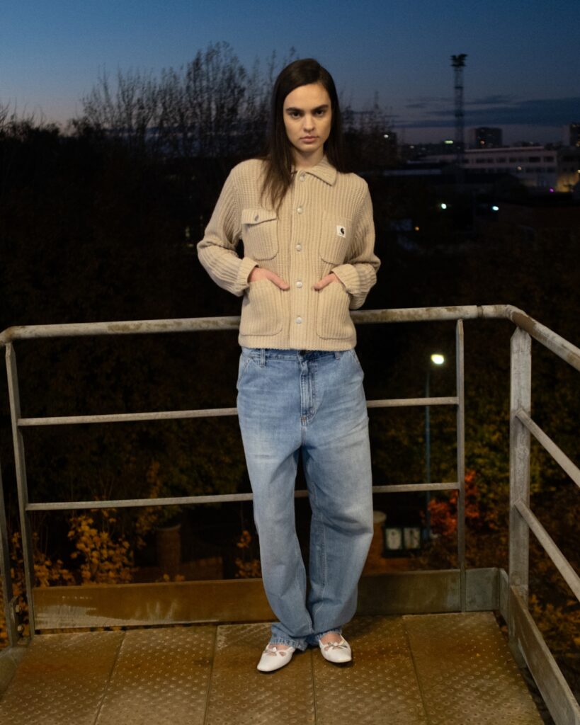 Outerwear takes centre stage, but not in the usual rugged, utilitarian way. Instead, silhouettes appear softened and elongated, with the collection’s hero pieces offering subtle twists on Carhartt WIP’s most iconic forms. A faux fur coatreshaped from the blueprint of the Michigan jacket becomes unexpectedly tender, while an extended version of the Detroit jacket turns the brand’s classic structure into something looser, almost cinematic.