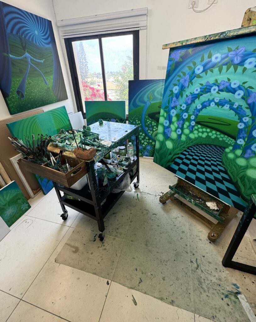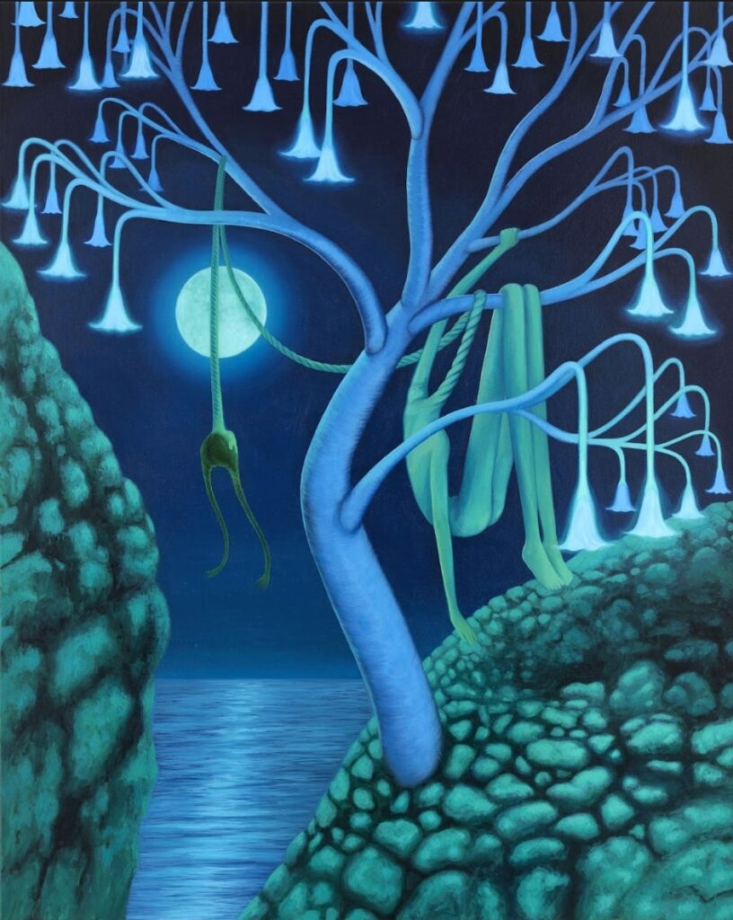 Katia: A lot. Dreams are a huge influence, many ideas come from dreams, or right before i fall asleep. I have dreams that stick with me for years! whole directions in my work, series, new ideas, come from dreams I had. It’s amazing, I’m lucky I can paint them. I’ve also had some psychedelic experiences that completely reoriented how I see. They opened new ways of perceiving. That definitely comes through in my work.