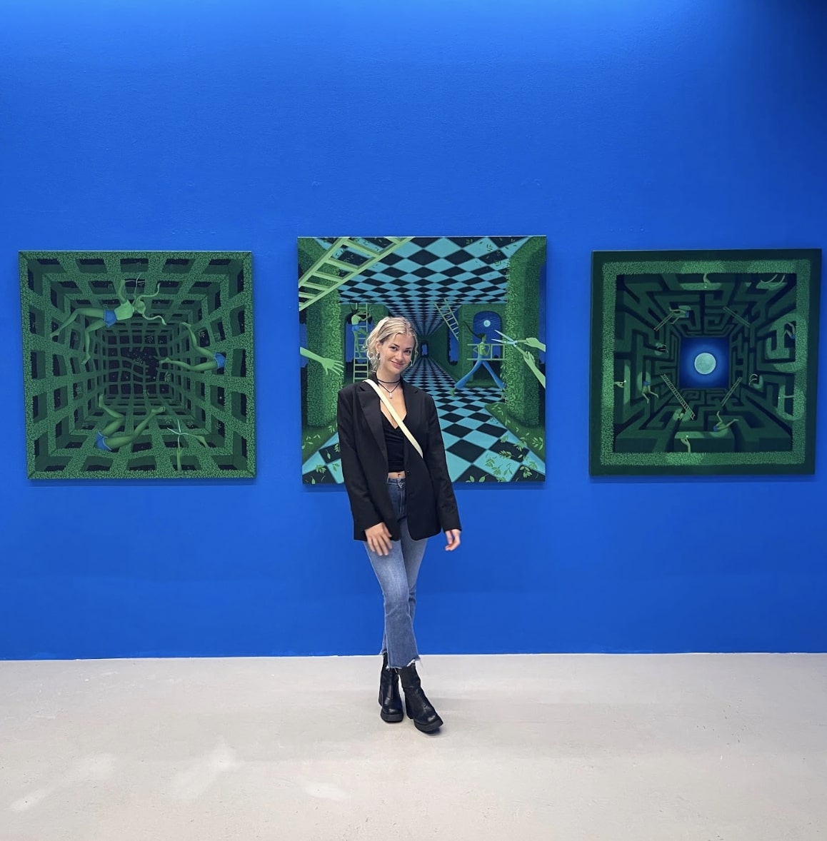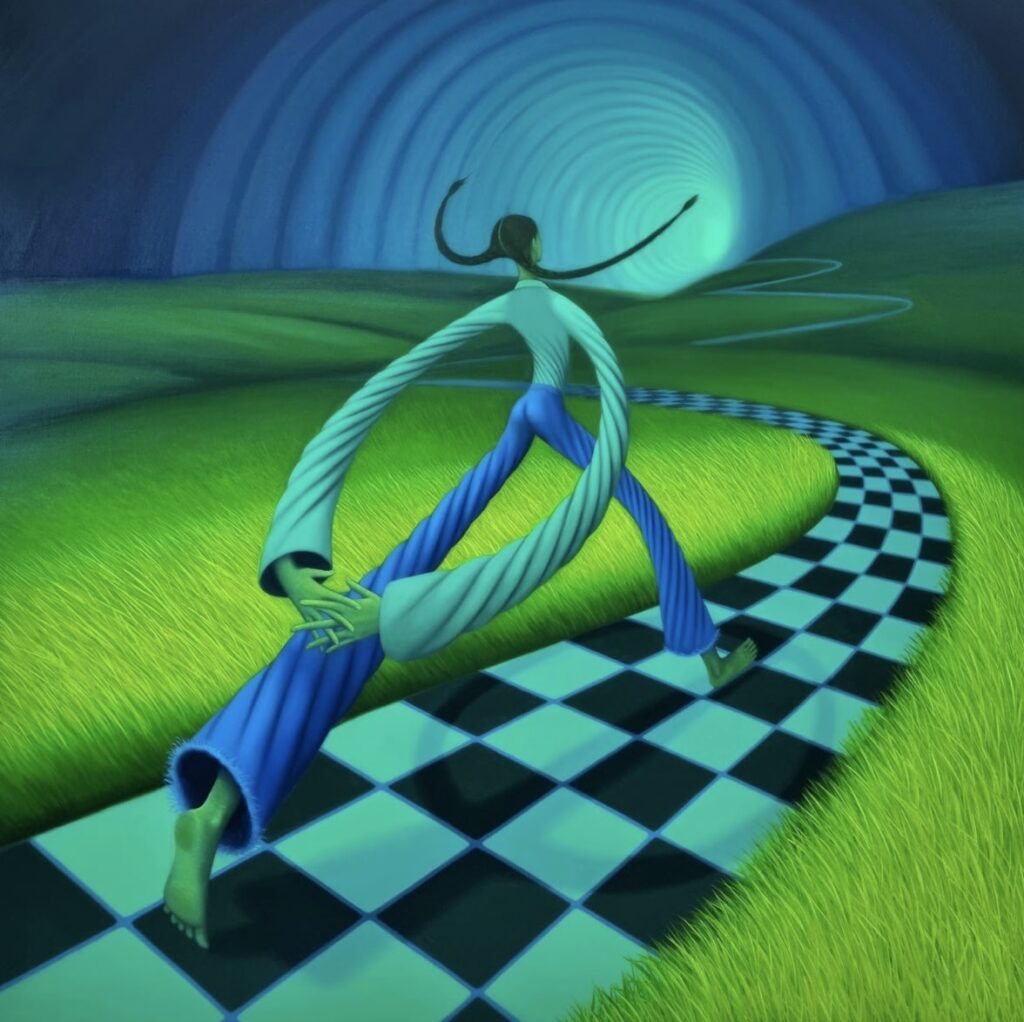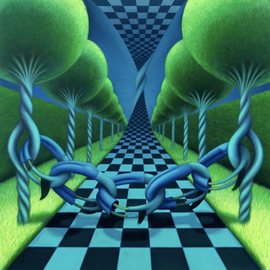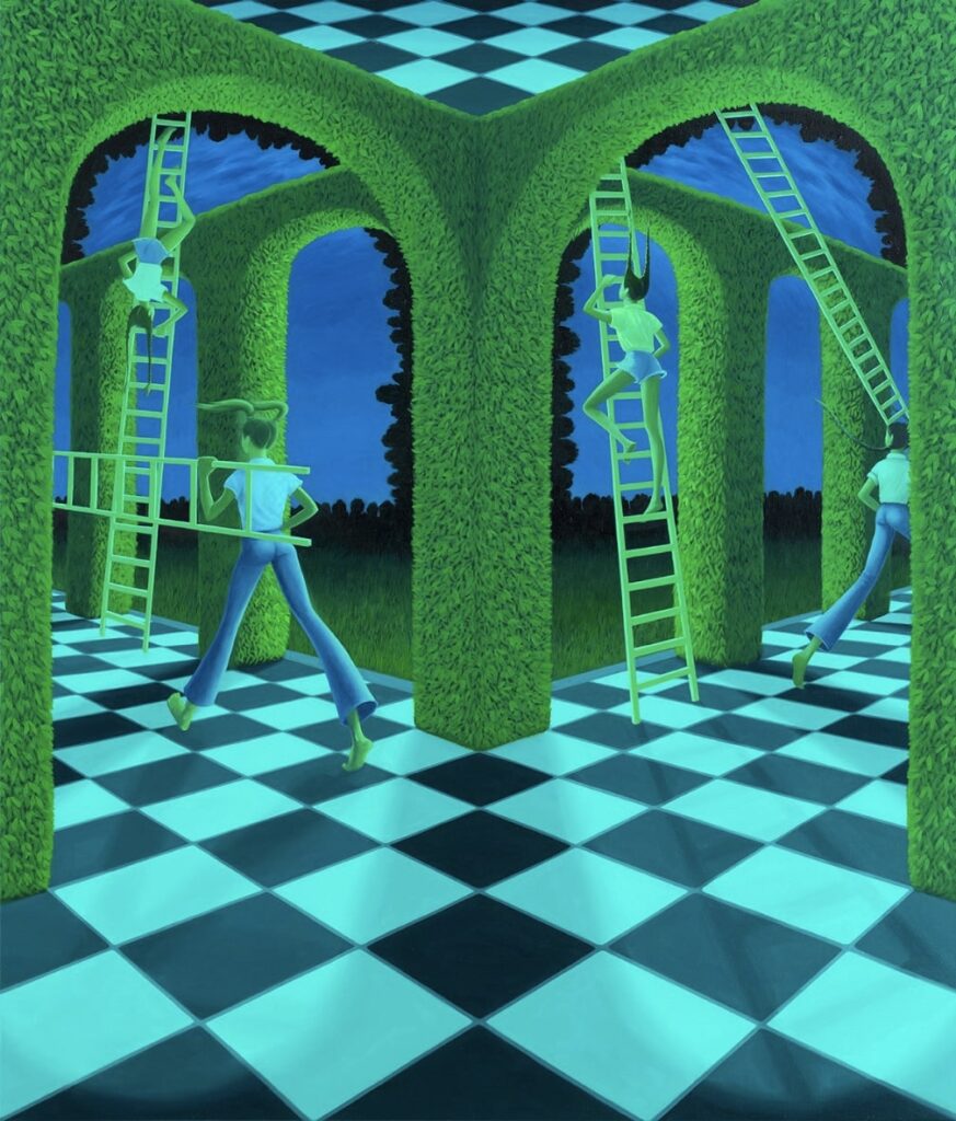 Katia: Both. My show “Pathways” at Galerie Kandlhofer back in September 2024 explored exactly that, I created a series of works loosely inspired by MC Escher’s impossible spaces, I had a lot of fun making these works, it was really challenging painting them – especially one titled ‘Lost And Found’ where I painted a four directional maze.