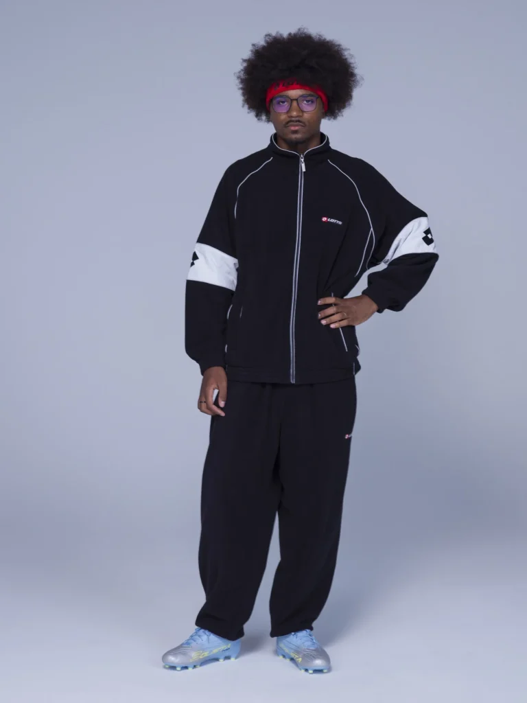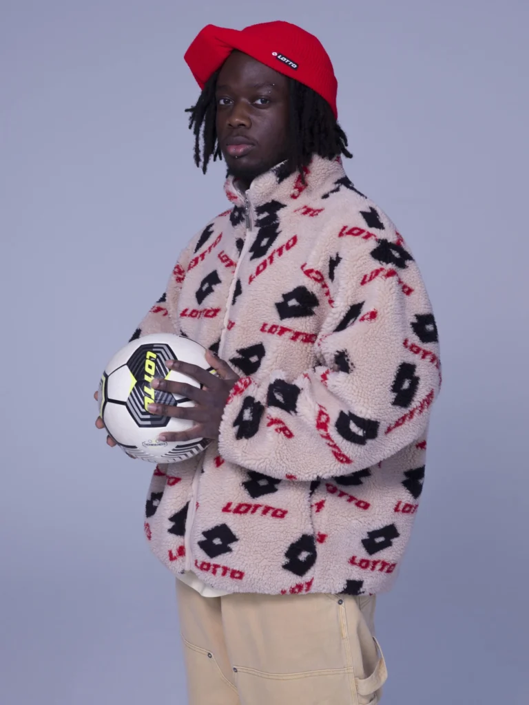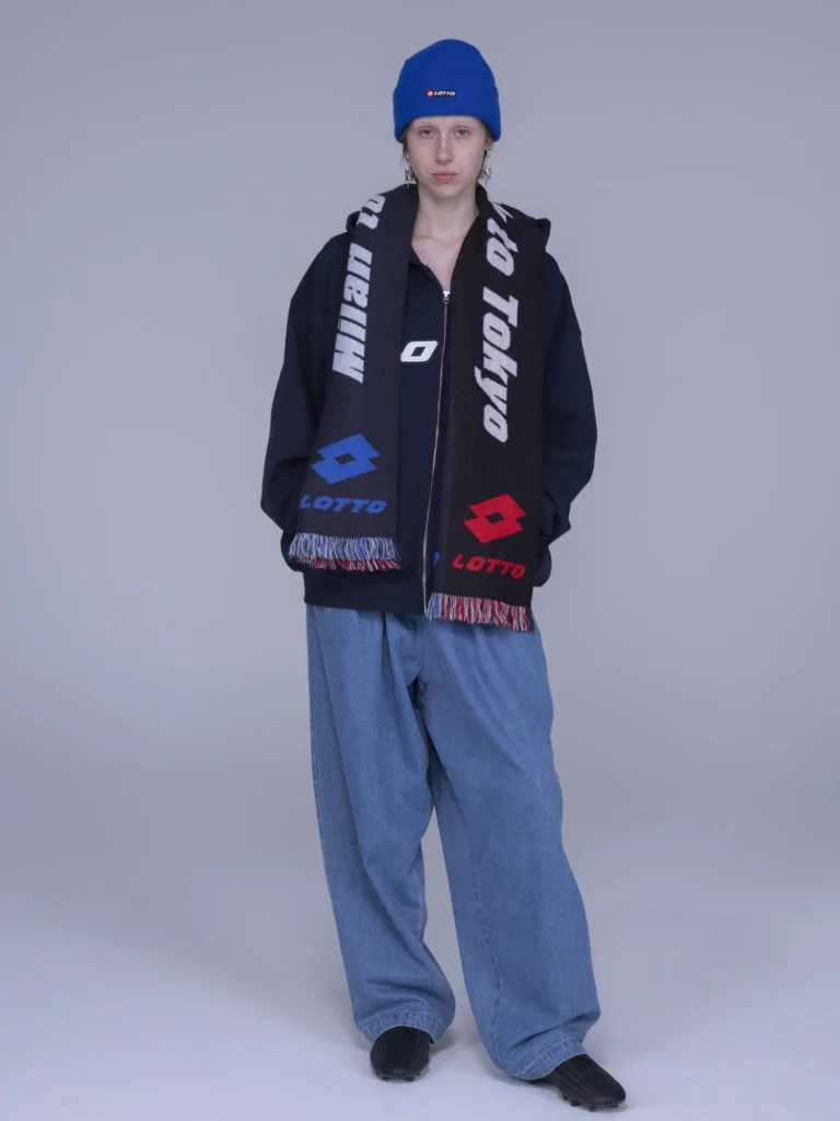 Key highlights include pullovers and knitted scarves stamped with the “Milan to New York to Tokyo” print—a striking emblem of LOTTO’s international presence across fashion capitals. Meanwhile, jerseys and fleece pullovers are marked by bold graphics and oversized branding, contrasted with the understated ease of loose joggers and classic sweatshirts. This balance creates a dialogue between statement-making energy and everyday wearability.
