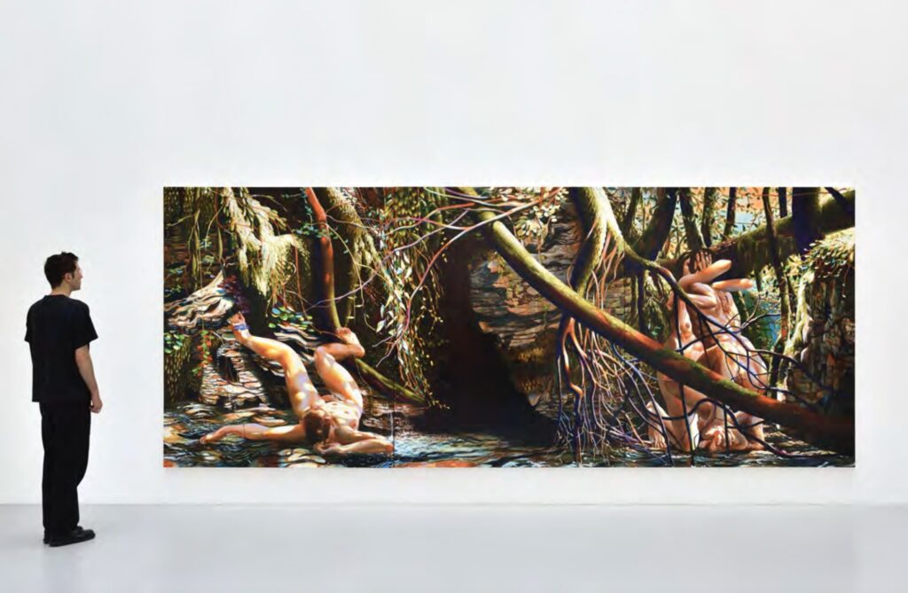Many of your figures appear fragmented, entangled, or dissolving into their environments. Tell me about that… Do you see this as a reflection of contemporary life, or more as a timeless condition of the human body?
