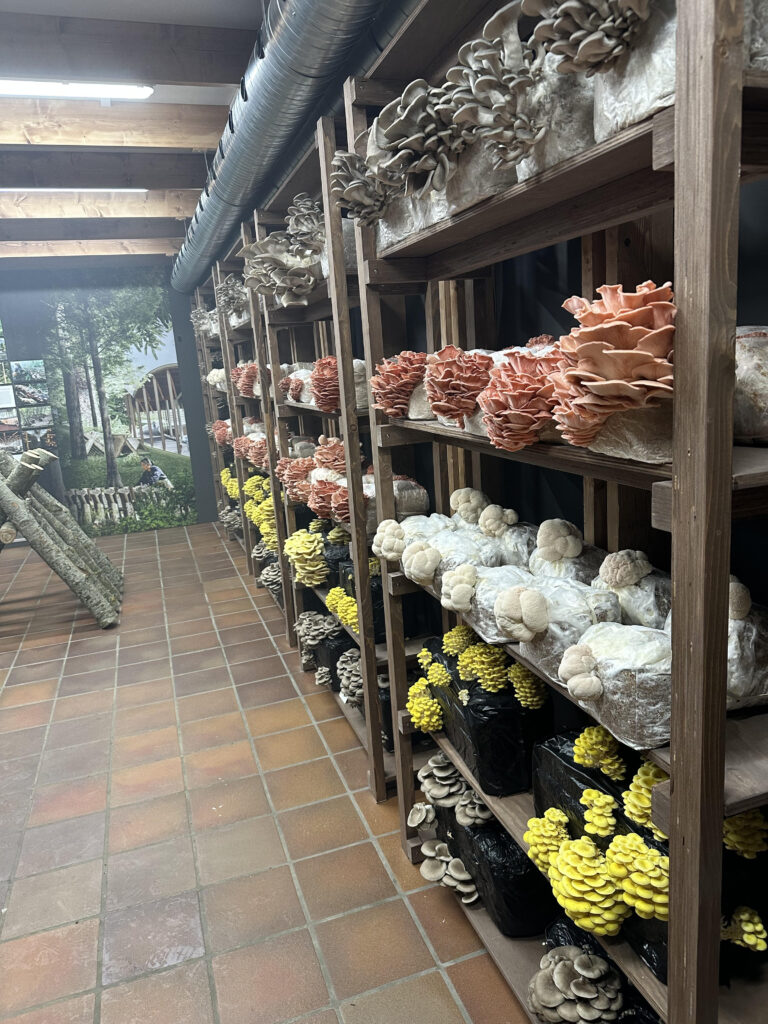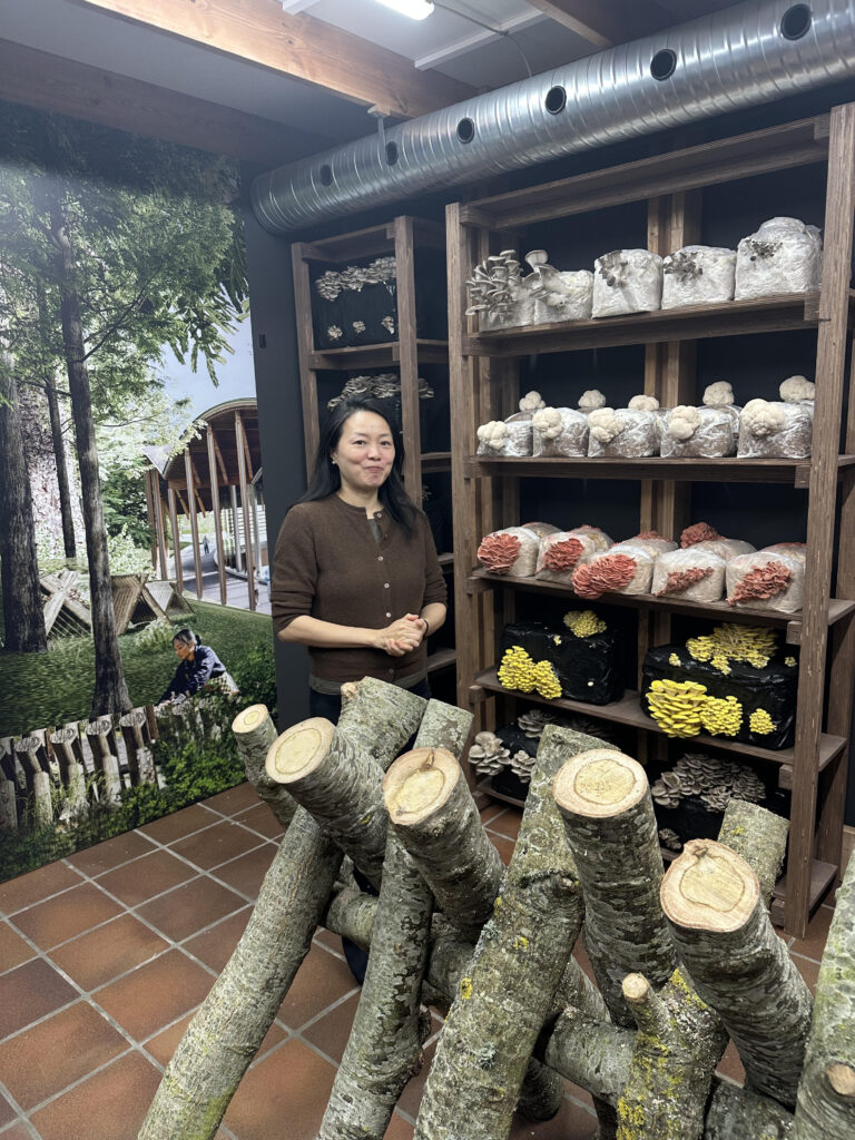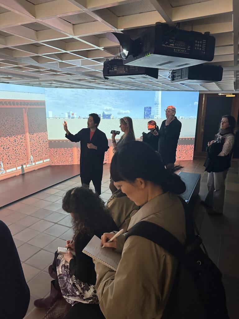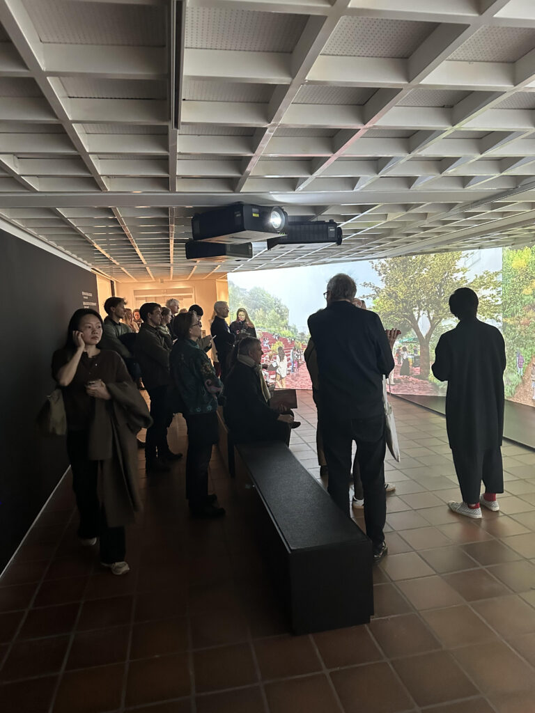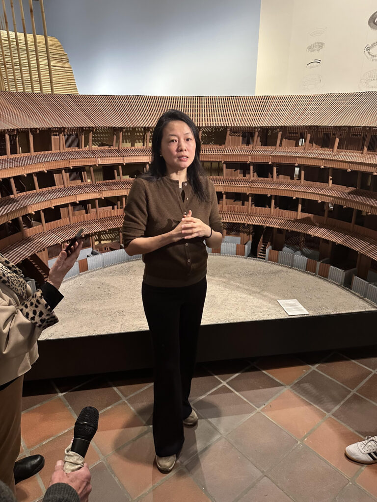 Three of Xu’s projects anchor her presence in the exhibition. A large-scale bamboo installation reflects her interventions on Meizhou Island. Models explore her sensitive treatment of traditional Tulou structures, while a reconstructed section of a mushroom production centre from Zhejiang province demonstrates how architecture can simultaneously function as factory, landscape, and museum.