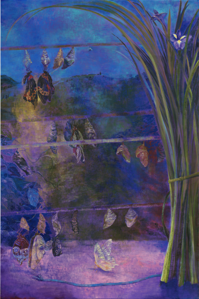 Minami: Color can represent emotions and feelings that are unexplainable. When I paint a mundane scene of daily life from memory, the colour pallet reflect how I felt at the time. My process involves layering colours in order to depict living things. I am looking to reflect nature where colour is so complicated; there is a system of layers beneath of the surface. Both literally and symbolically.