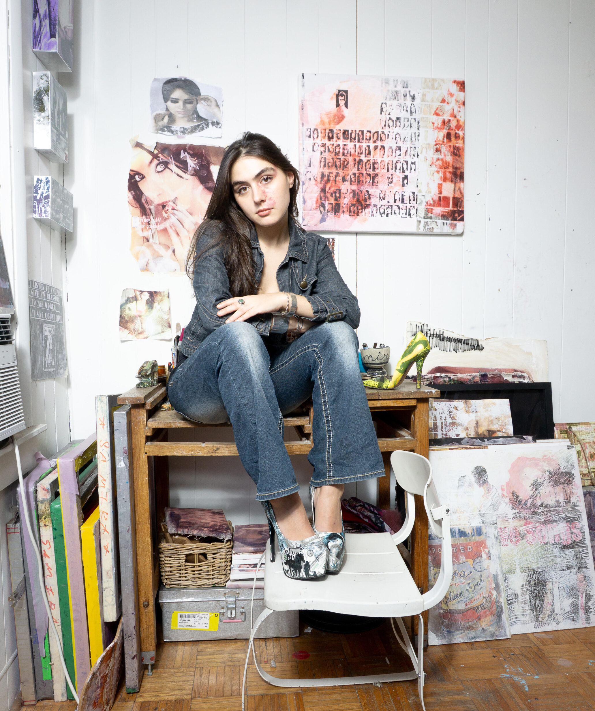 Samira: My symbols aren’t fixed; they behave more like recurring characters. Heels, lips, faces, text, women’s silhouettes return because they already carry cultural baggage. I’m interested in how symbols wear down over time, how they accumulate meaning through repetition. They stay with me because they’re flexible.