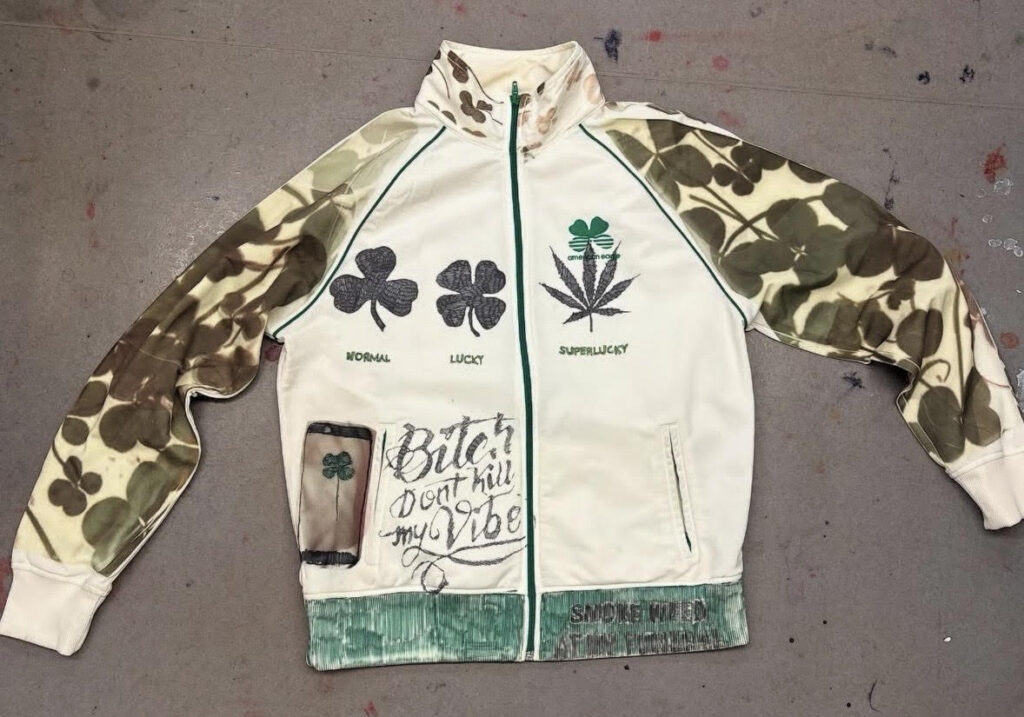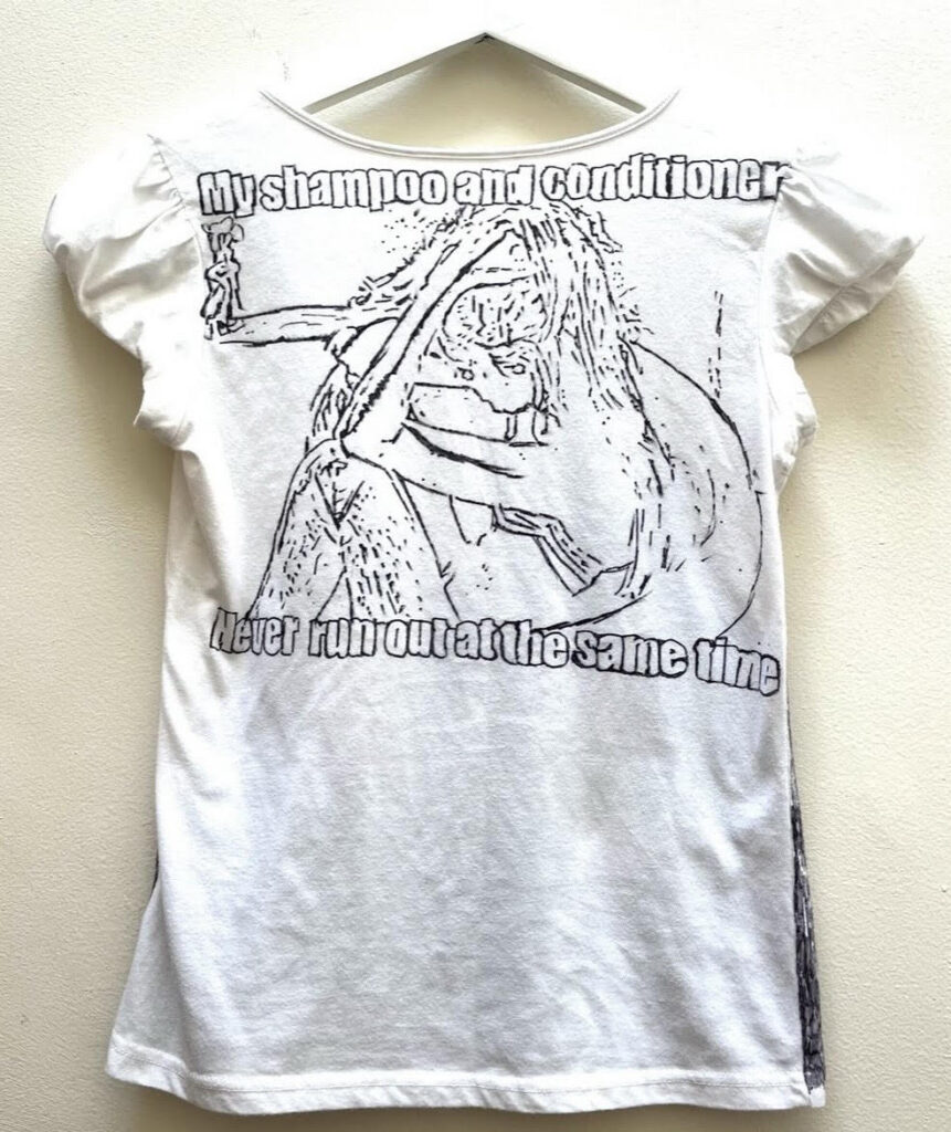 The clothing works differently. It’s more immediate and public. A shirt might make someone laugh, feel seen, or start a conversation. It’s still rooted in memory and meaning, just faster and more social. It doesn’t take itself too seriously, but it’s sincere a kind of intimacy that’s worn, shared, and passed along.