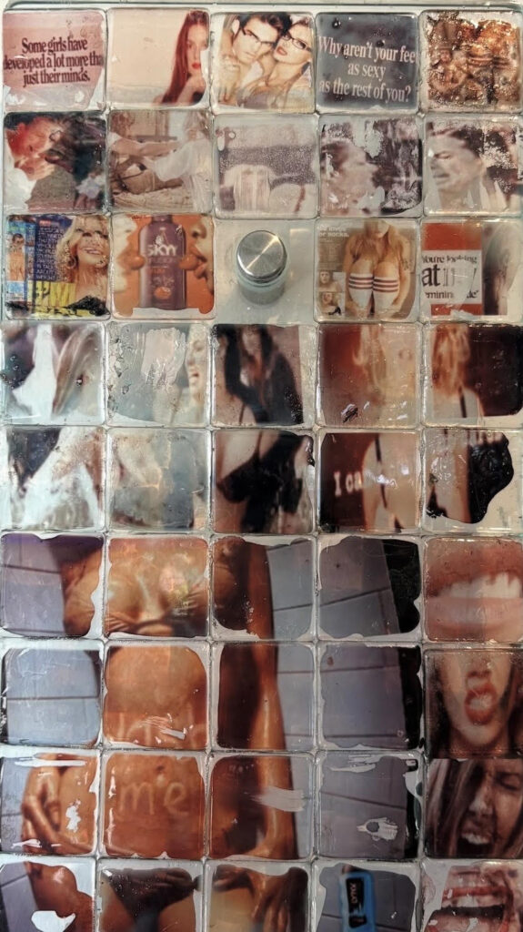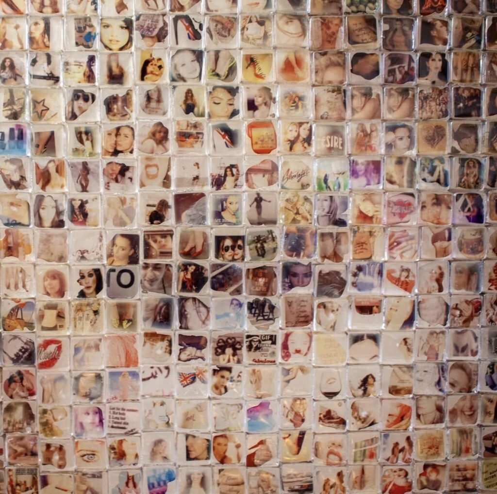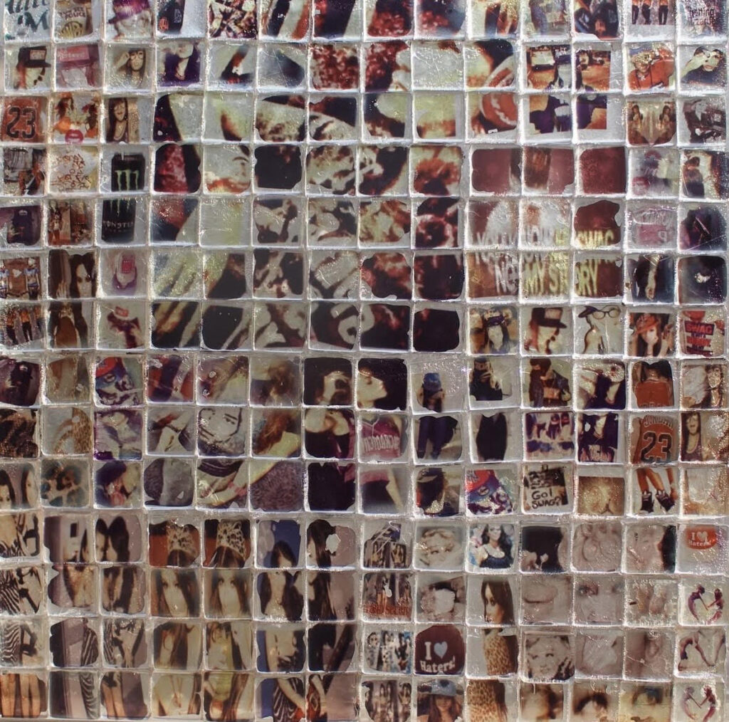 Samira: Humor enters my work almost like a side-eye at the world. It comes from the tension between something serious and the way it’s presented. I’m drawn to pop culture imagery, ads, memes things that already feel performative or slightly overdone. When I shrink a meme onto a delicate tile or slip it into a formal, beautiful composition, the contrast becomes absurd. It’s almost bootleg, almost satire funny but a little unsettling. Humor lets me move through memory, loss, and instability without making the work feel heavy-handed. It’s all about how you choose to look at it.