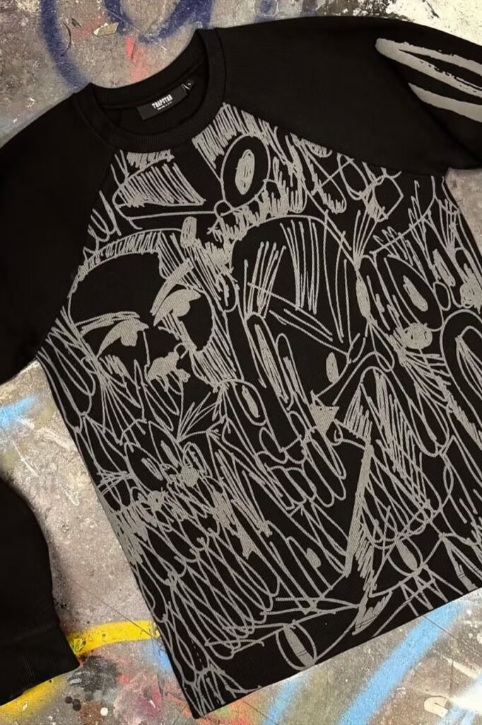 Having previously joined Trapstar as a guest artist during the brand’s Xbox launch event, Slawn now returns with his full creative arsenal. Renowned for his abstract, cartoonish figures — often affectionately dubbed “clowns” — Slawn injects the collection with his signature mix of bold color palettes, playful energy, and raw, unorthodox forms.