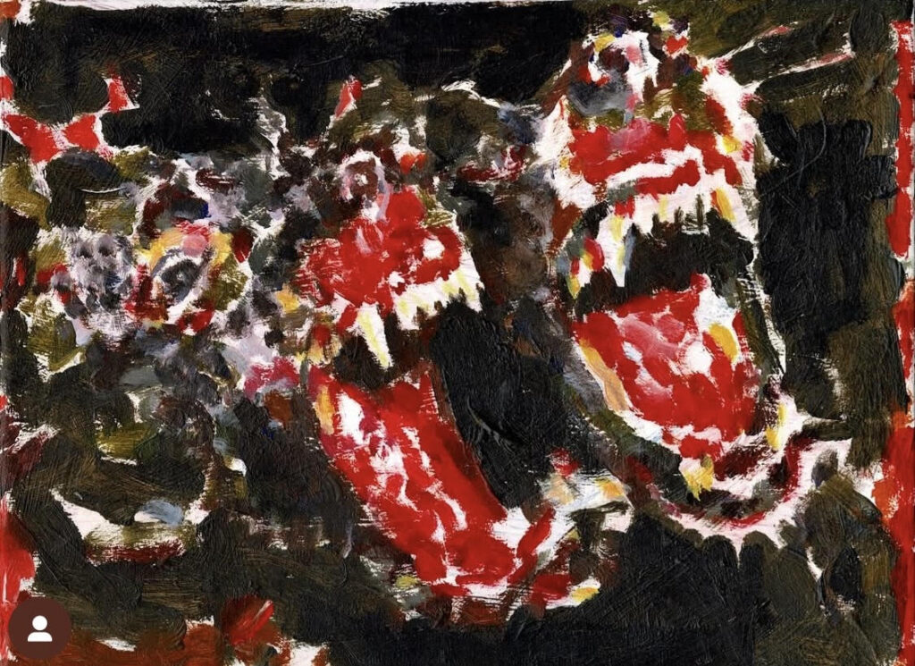 Joan: My favourite film is In the Mood for Love. I really like how it portrays unfinished love and a relationship that seems open but is actually deeply closed. The music makes you travel through a feeling of nostalgia. I also like the beauty that can exist in what’s incomplete. The colours in the film are characters that scream without words — they transmit desire and melancholy. Wong Kar-wai has a special way of playing with aesthetics, movement and the texture of time, which really inspires me in my artistic work. I try to reflect that sensitivity and way of capturing memory and emotion in my painting, hoping that whoever sees it feels that same intensity. I feel that if this director were a painter, he’d be an expressionist.