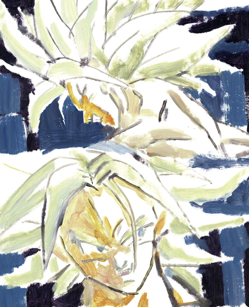 Joan: I started painting at school in an oil painting workshop. I think the first time I painted I was 13 or 14 years old. I just remember that I didn’t like how long it took to dry, and that I kept asking myself what art meant, what it was for, why it had value. When I finished school I took a gap year. In that year, I remember reading a lot, watching a lot of YouTube videos, my free time was very focused on a curiosity about art. Then in 2020 I started studying Visual Arts, and that year was very important for me. I think from that point on I never stopped painting or believing that it was possible, and I started taking everything I did very seriously.