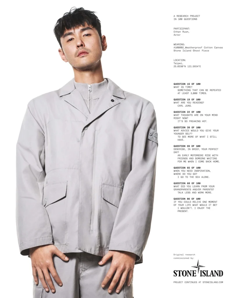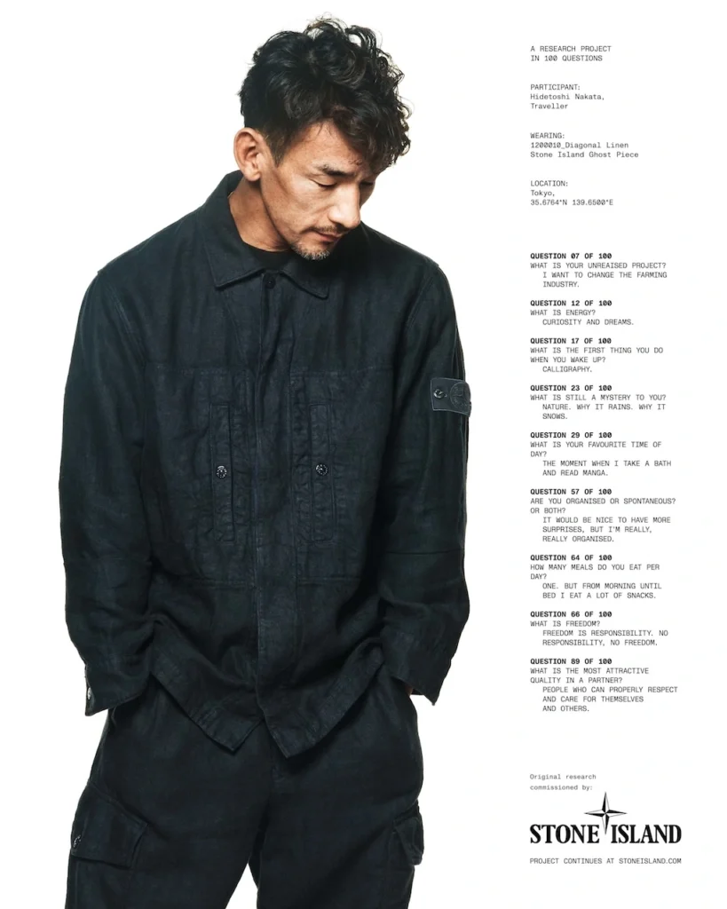 The collection is showcased as part of Stone Island’s ongoing “COMMUNITY AS A FORM OF RESEARCH” project. This initiative highlights individuals within the brand’s cultural and creative sphere, featuring them in the campaign. The campaign emphasizes the versatility and high-quality materials of the Ghost collection.