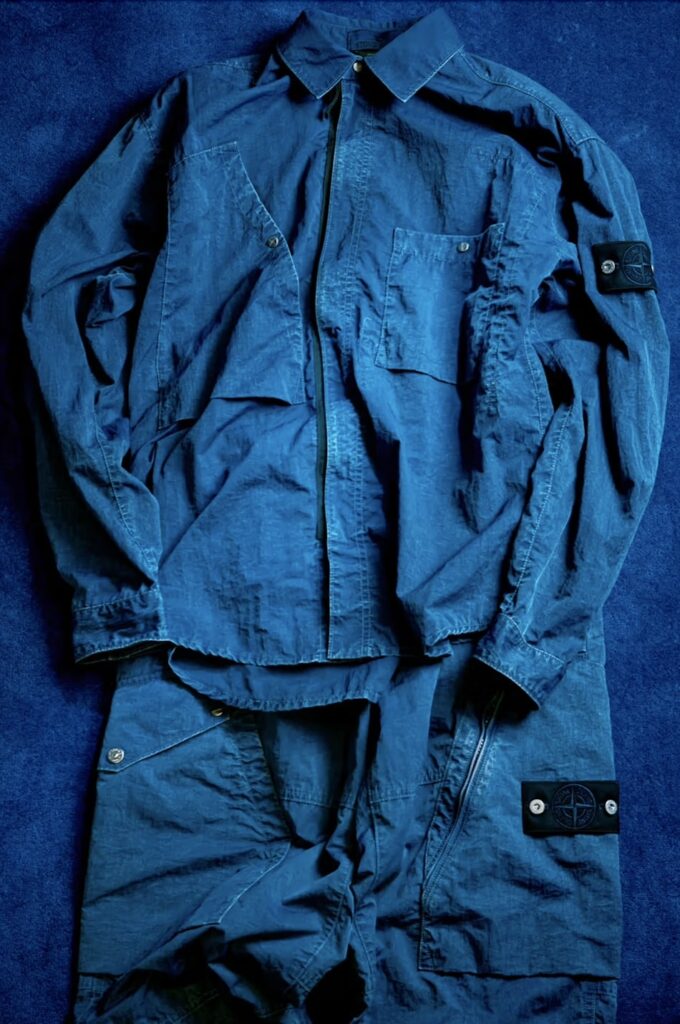 The collection introduces a diverse range of specialized fabrics, including Polypropylene Denim, David Light Indigo-TC, and Micro Corduroy, alongside traditional Japanese raw selvedge denim. These advanced materials form the foundation of an assortment that spans outerwear, overshirts, utility vests, and both classic and Penta jeans. Adding to its identity, each piece features a new black badge embossed with a blue compass logo and nickel shank buttons, an homage to denim’s enduring heritage within the Stone Island universe.