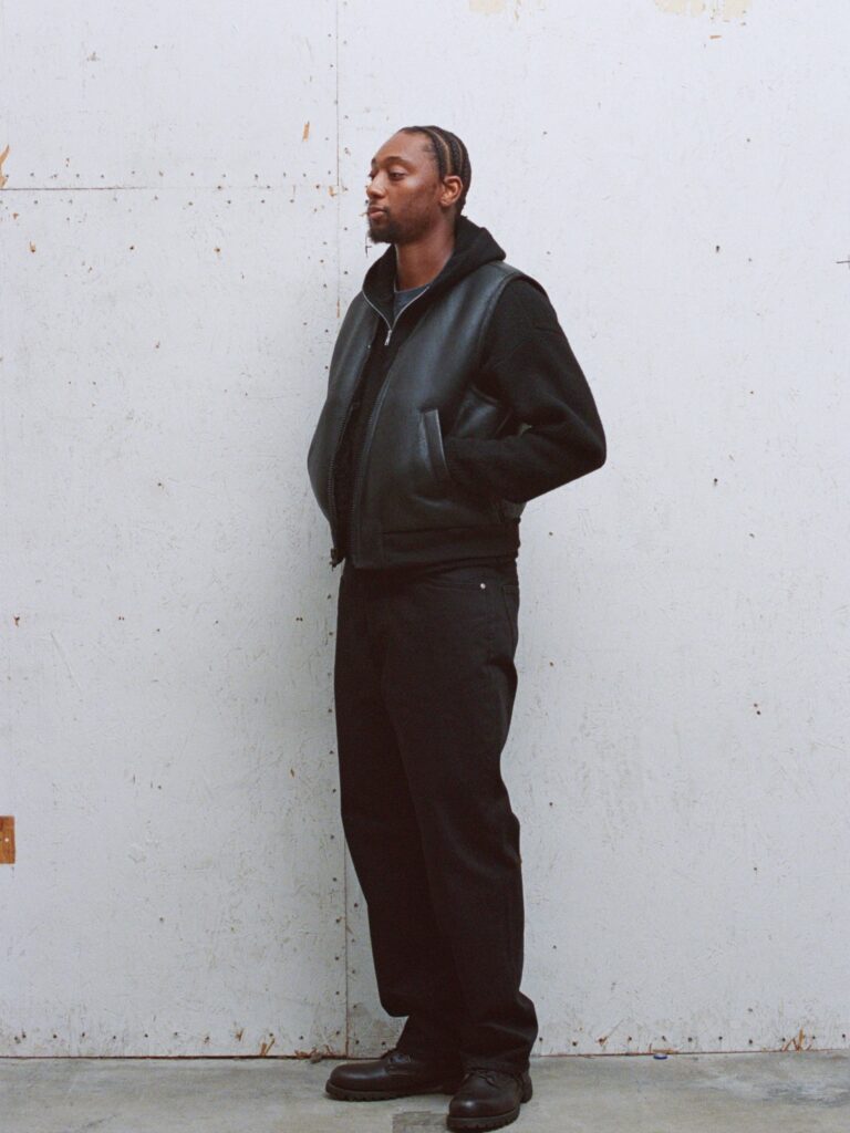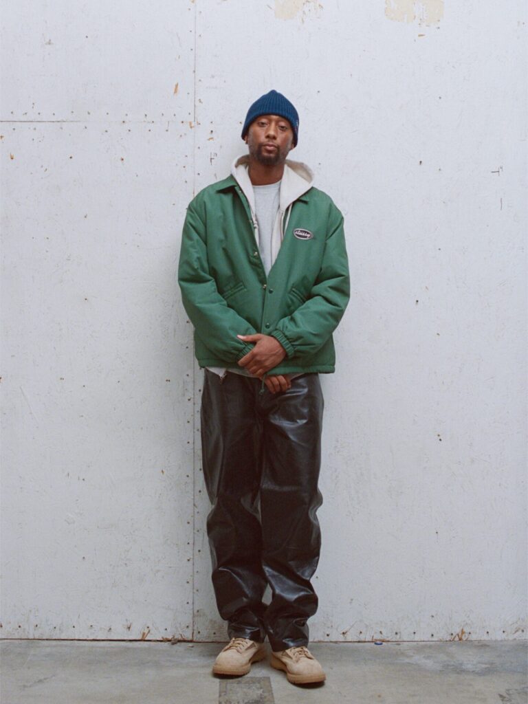 The garments themselves balance comfort and craft. Sport-striped knitwear, quilted outerwear, and leather and suede jackets coexist with fluid silhouettes and functional detailing, echoing workwear traditions and the free-spirited legacy of surf and skate culture. Yet there’s also a quiet refinement—a sense of utilitarian luxury that speaks to how Stüssy’s influence has matured while keeping its pulse on the street.