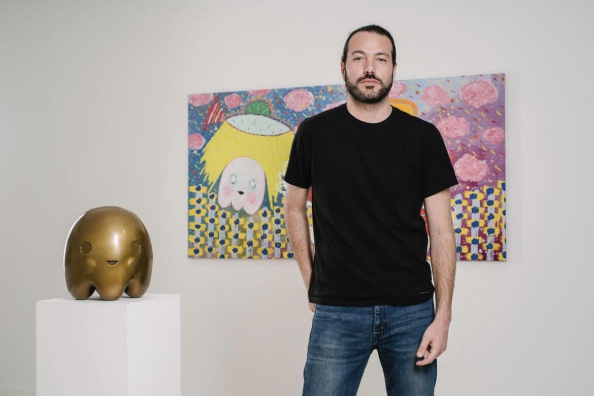 Adam spent countless hours at his grandparents’ framing factory in New York City as a child and adolescent. There his passion for the arts grew, and it became inevitable that he would follow an artistic path. With Handler’s use of acrylic paint, oil sticks, pencils, and markers, his work adopts a child-like style, usually featuring characters such as bats, bees, ghosts, and girls. His works explore loneliness, imagination, solitude, and connection themes. Combining earth tones and pastels and playing with scale, Handler invites his viewer to discard the heaviness of time and question perception. Handler’s works are autobiographical, inspired by a love for his wife, mother, and grandmother.