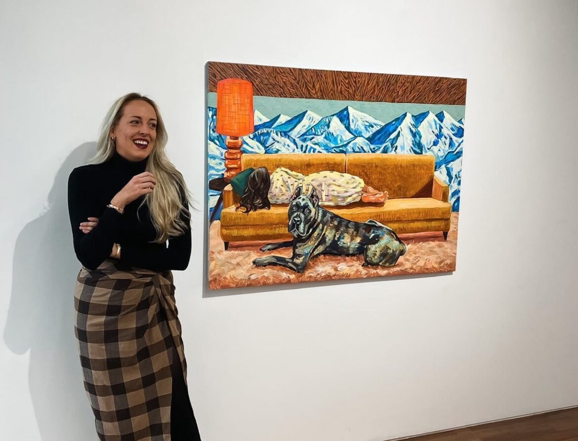 After graduating, Brittany moved to South Korea. She quickly became enamored with the architectural elements found in Seoul neighborhoods. Many of them combined the traditional Korean houses, or hanoks, with new geometric contemporary structure-things. She gained notoriety for painting these neighborhoods and then completely stopped to continue painting what interested her; violence, wine, food, luxury fashion and natural disasters. Recalling her childhood fear of alligators, she began adding them as a motif in her work in 2020. While they represented danger in the beginning, she slowly became fond of the creatures, and now they act as more of a companion to the figures in her paintings.