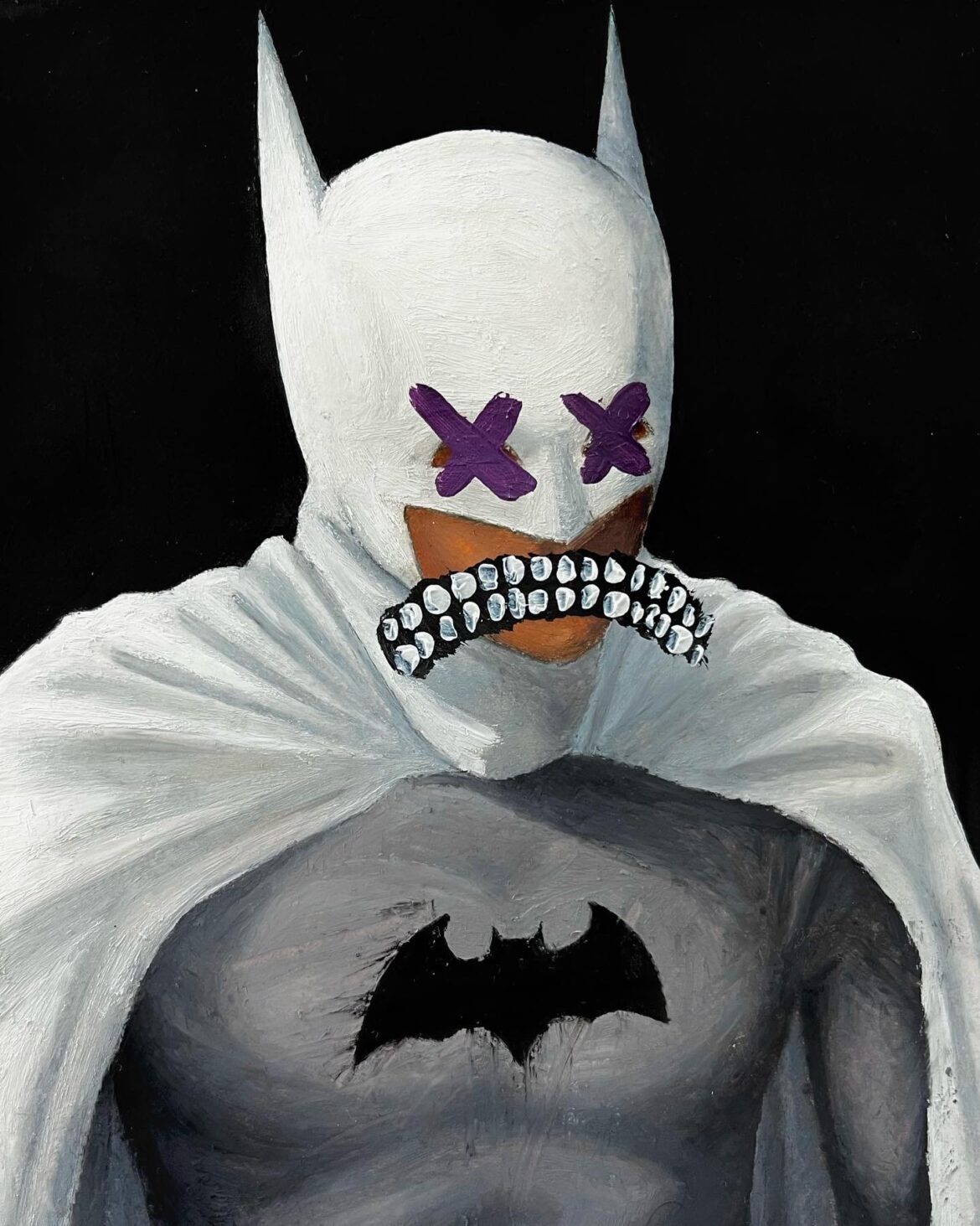 To be completely honest, I always just liked the way the teeth looked in my work. I was experimenting a lot before I started posting on Instagram, and I sort of just got lucky when I found this signature. I don’t really think they represent anything, or better yet I don’t try to make them represent anything other than the emotions the teeth displays on the faces they’re covering. I also noticed that people’s eyes tend to gravitate more toward the teeth when they look at a painting at first glance, much like you would when meeting someone for the first time in real life, so that’s a bonus.