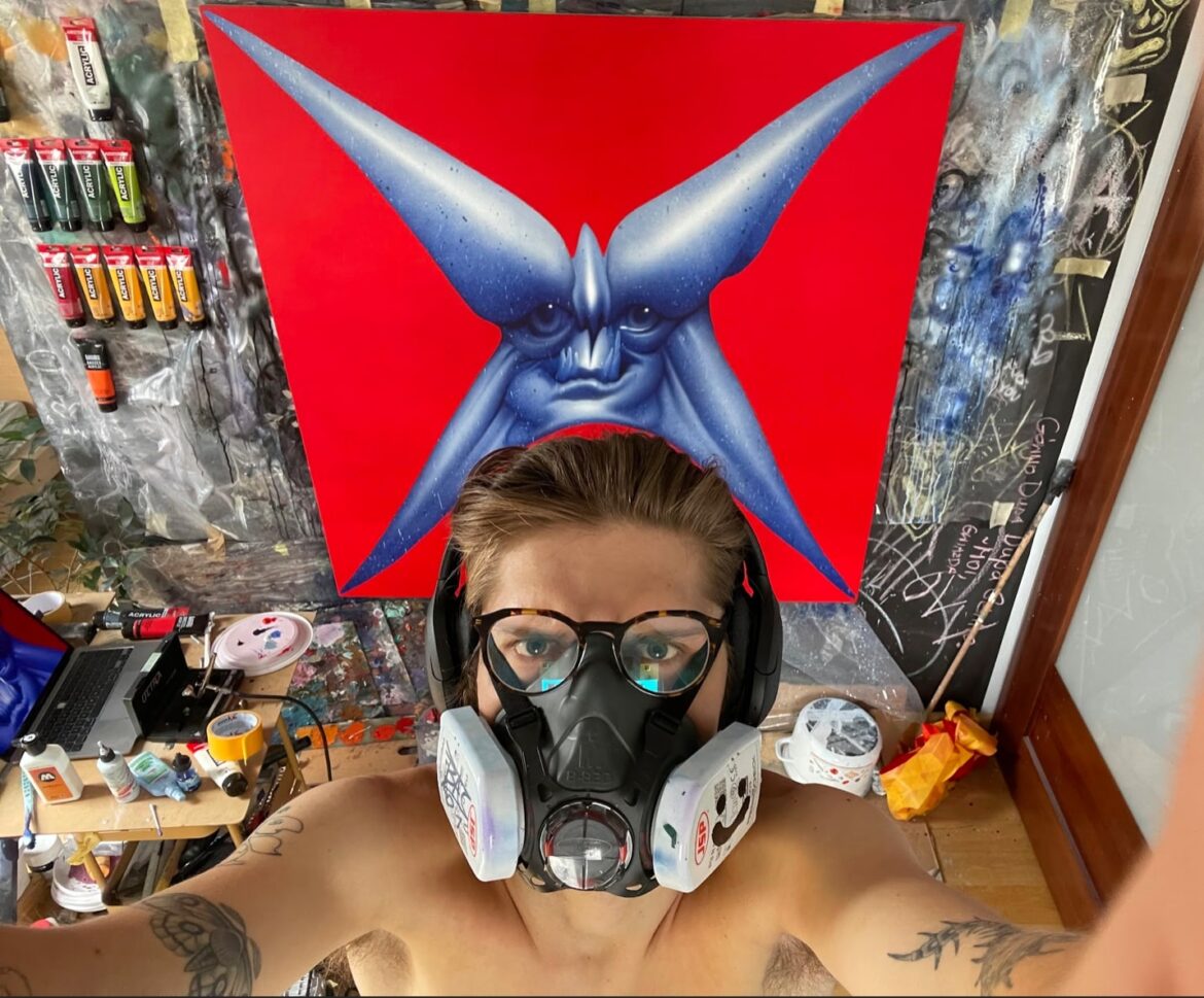 At the beginning of 2022 I was making large-scale, spray-painted, cyber sigilism abstractions. The basic principle of all those pieces was reproducing a set of the same shapes using stencils. At first those pieces were quite simple in form. After a while I felt the need to make them more complex. But to do that I had to make progressively larger work. This is because the precision of spray-paint caps is quite limited, which made it impossible to scale down the stencils themselves. Moreover, although my previous works were overwhelmingly large, they were made surprisingly quickly, which led me to burn out of ideas rather abruptly. I was forced to find a novel medium that fit not only my way of working, but also my aesthetic inclinations. One night, not knowing about the existence of the airbrush, I naively told my friends that I was in dire need of a “very precise tool that acts like a spray-can” and one of them happened to mention the airbrush. That night I purchased an airbrush and the rest is history, I guess.
