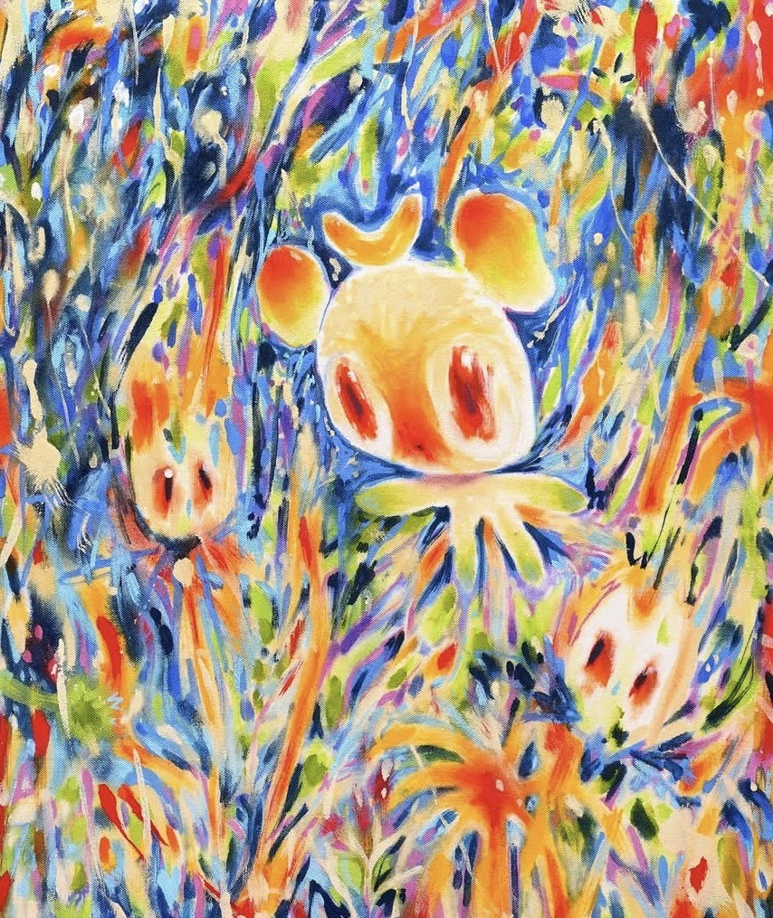 You’ve mentioned bringing your animation background into painting. Is time still part of the work — do you think of each piece as a frozen frame from an unseen film?