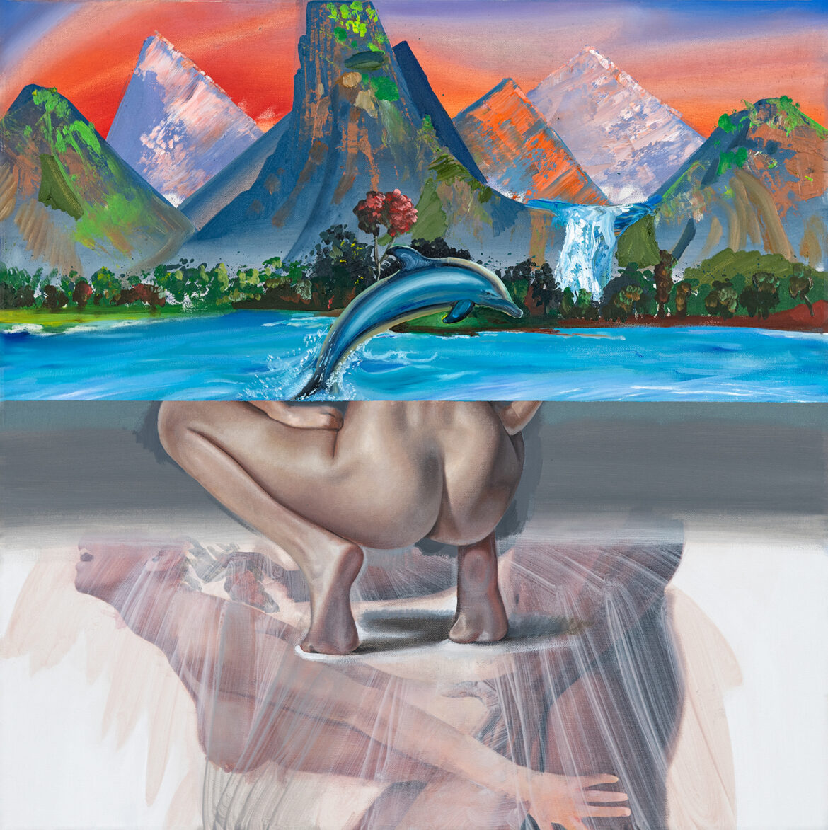 Paris Giachoustis, (b.1990), creates his own wonderland, not by enlarging and diminishing or by “literary nonsense”. His wonderland is today’s Berlin, where the painter has lived and worked since 2015. He doesn’t have to invent anything here, but only describe and recontextualise, so wonderful is the present in his eyes. Dream and reality merge in his worlds; it is up to each visitor to discover the real or the surreal, the everyday or the exotic in different skin colours, same-sex or opposite-sex eroticism, dream and landscape scenes. He often uses the term “new romanticism” for this, combined with a transfiguration of the spontaneity of the subject. His wonderland is by no means a paradise – we definitely find critical tones here, be it narcissism in society, the loneliness of the digital worlds or the way we treat each other, all wrapped up in his strong, colourful, characteristic aesthetic.