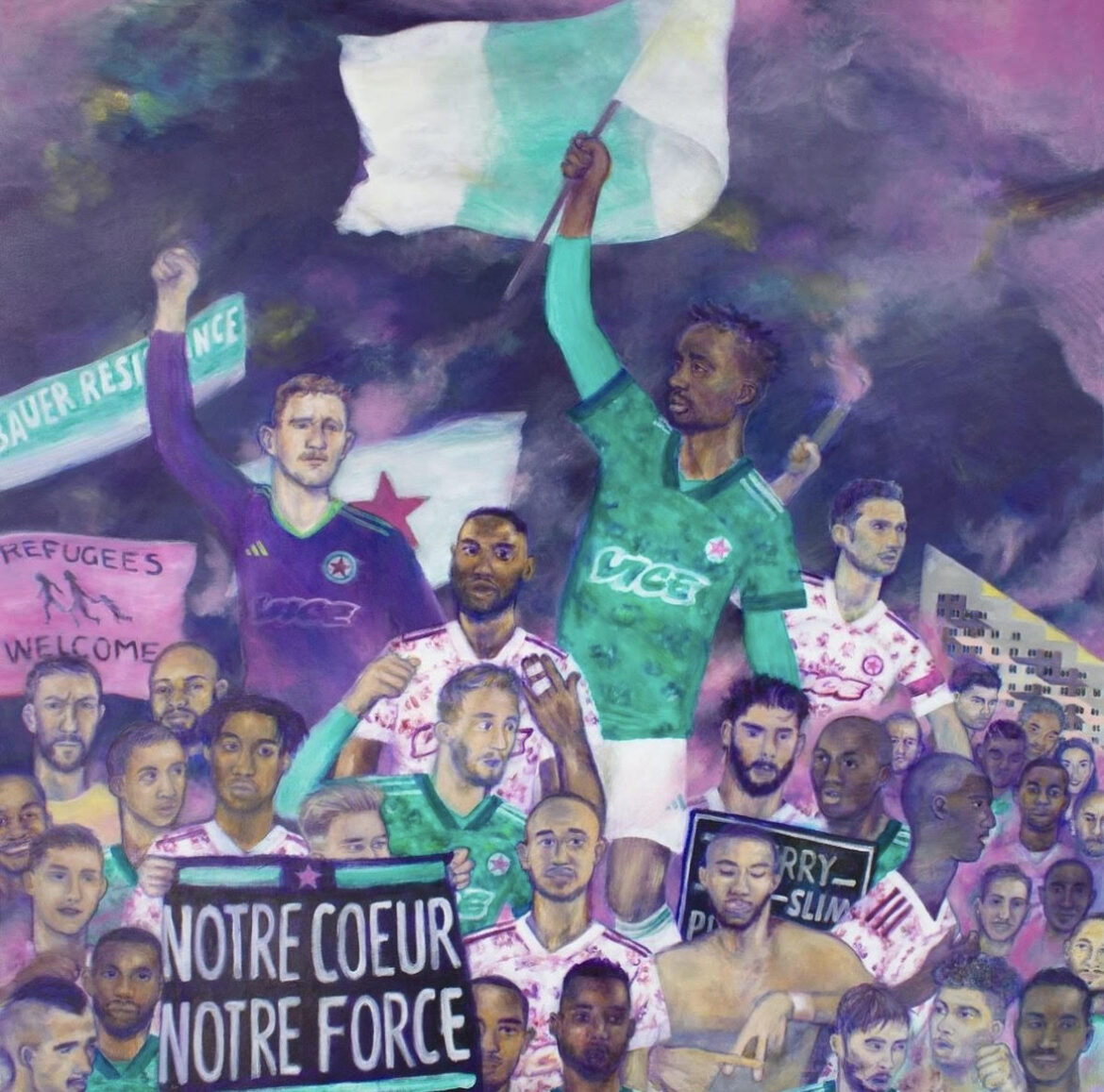 Ruth Emma Davis (b. 1981, Liverpool), has been featured in renowned publications such as: Vogue, Mundial, Copa90, This Fan Girl and Season Zine and has been commissioned by Adidas and Red Star FC for her beautiful football artwork which focuses on women. From grassroots to pro player, the work is about her experience of football- from playing in the park surrounded by wild flowers to portraits of pro players.Ruth works in acrylics and invests each work with an incredible richness and luminousity.
