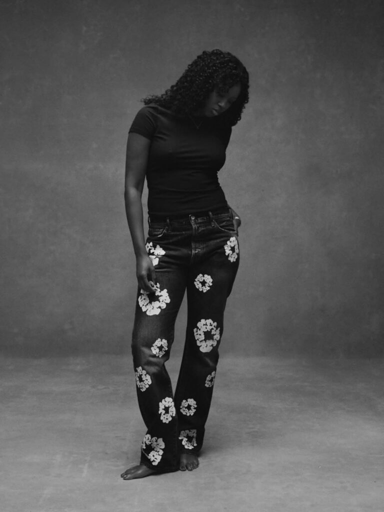 For Emory, this isn’t just a product launch; it’s the moment denim stops being a vessel borrowed from other institutions and becomes a direct extension of the brand’s voice. At the center of the debut collection is the cotton crown, an emblem threaded throughout Denim Tears’ history. The motif — deeply tied to the legacy of forced labor and the role of Black Americans in the cotton industry — reappears here not as a scar, but as a symbol of reclamation and power. It spreads across a broadened range of fits, washes, and treatments, emphasizing that the narrative is expansive, not static.