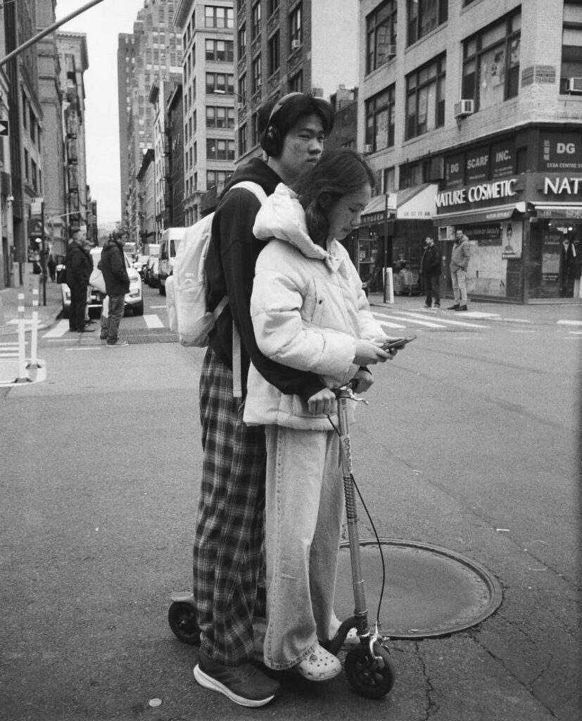 This philosophy permeates all of Segal’s work, whether she’s shooting from the hip in a crowded subway, chasing fleeting light through alleyways, or directing strangers in beautifully awkward moments. Her camera of choice is often compact, quiet, and analog—tools that allow her to remain unobtrusive while seizing intimate glimpses of the everyday. The results are images that feel both cinematic and immediate, offering viewers moments of tenderness, tension, and surreal humor nestled within the city’s noise.