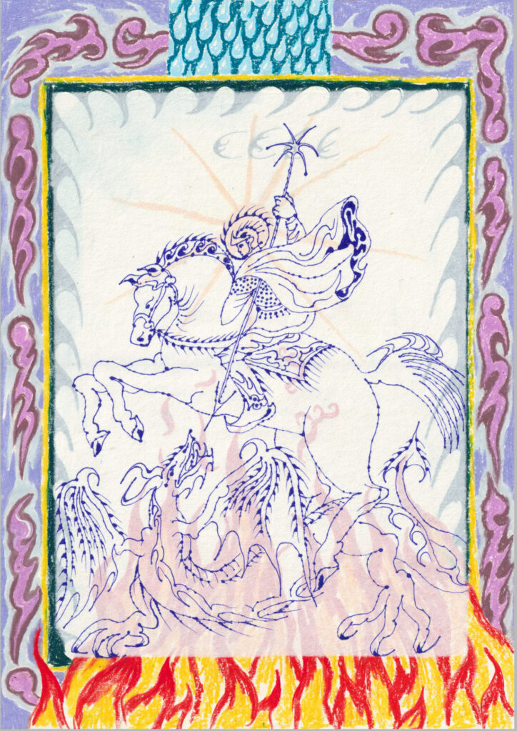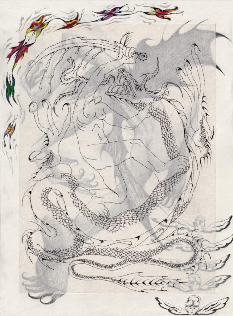 Eliott: These creatures are symbols that lies in our collective unconscious. The dragon, for example, beyond representing the ego (guarding a treasure, proud, speaking cunningly) also embodies the fear of natural disasters: storms, earthquakes, glaciers swallowing people who walk upon them. In alchemy, it represents the prima materia, the raw, chaotic prime matter that we must open to release the light it contains. I find these images fascinating. They are complex, timeless, and appear across all cultures in various forms. Even though they don’t exist objectively, they hold an undeniable inner reality that is shared by all of humanity. They allow me to see the world through a poetic lens and provide clues about the inner forces that move through us.