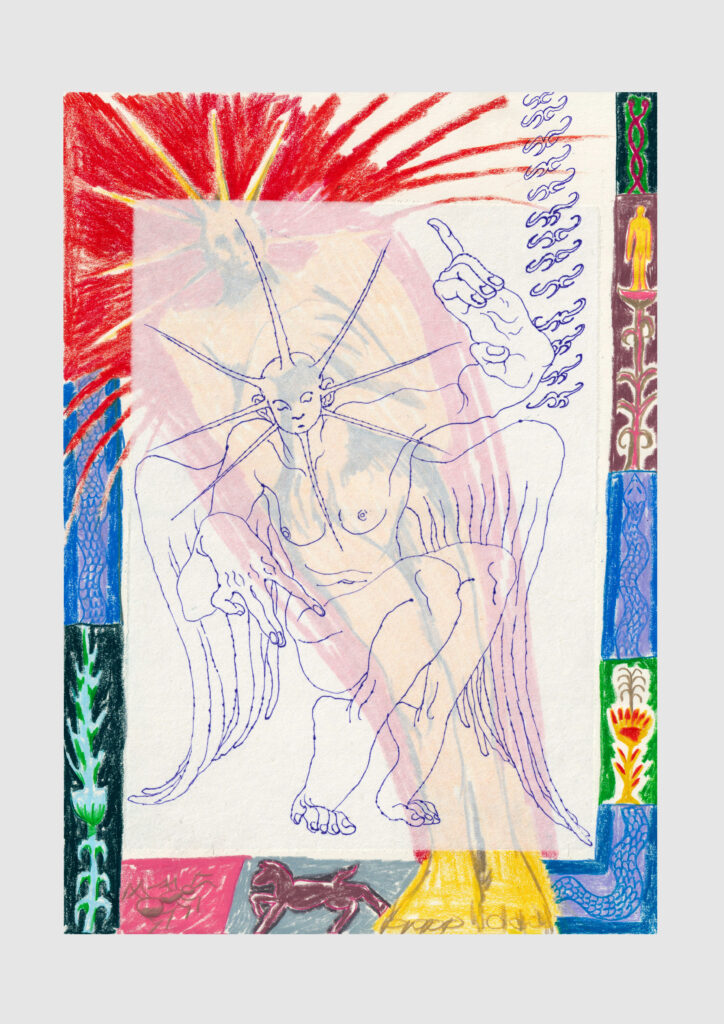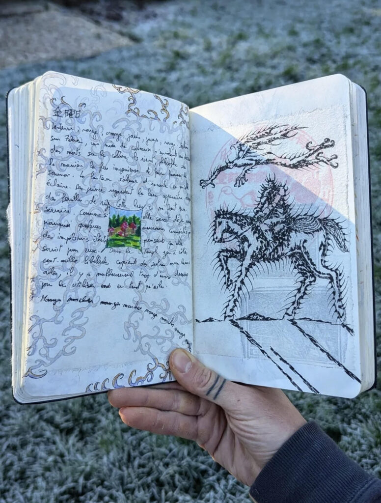 Following the methods of others wasn’t going to work for me. I needed to find my own process. The word “documentation” feels right, I see it as documenting an inner journey. I start with one element, and the rest unfolds as I go. Most of the time, I don’t know where I’m headed; I just draw what I see along the way. And as it’s an inner journey, I see what resonates with me, what I like to read or to watch.