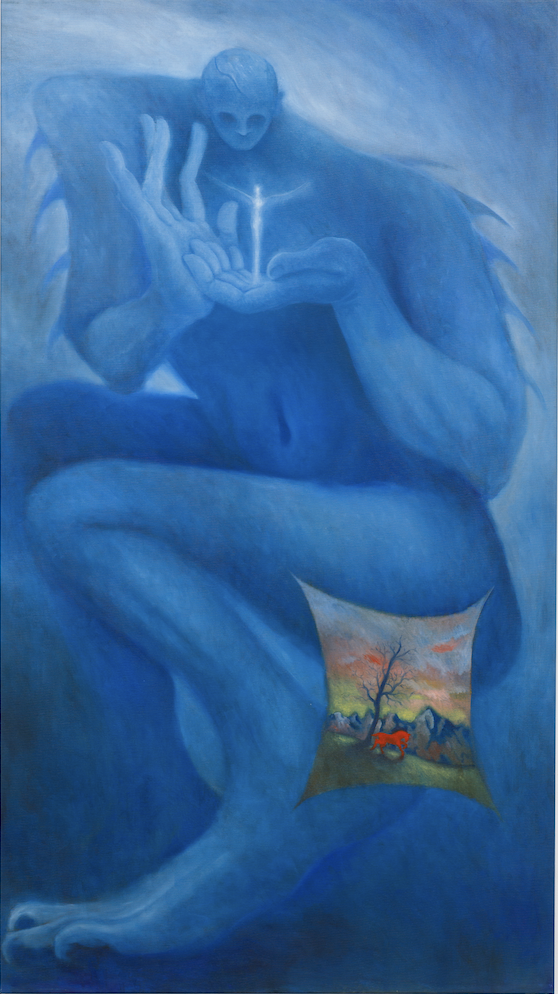 Years ago, during a period of exhaustion, I experienced an intense episode of sleep paralysis, during which I saw this inner light, that exists in all of us, no matter what we do. It was a pivotal moment in my life, and it gave me a tremendous sense of hope. I like to bring that idea in my paintings, sometimes they feel dark, but I always try to put a small door for the light to enter.