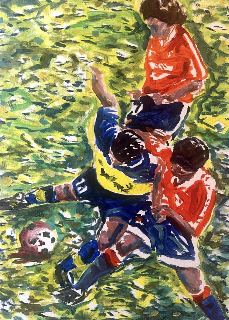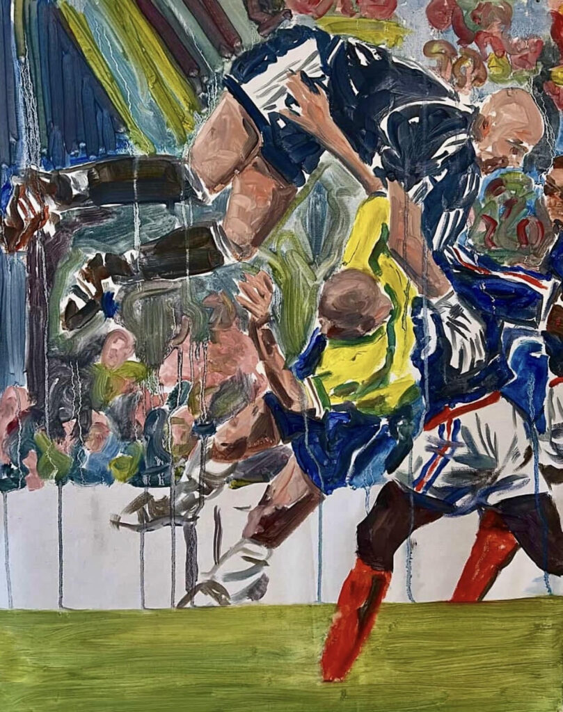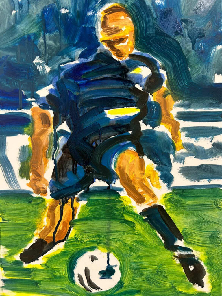 Your paintings don’t depict football matches but rather convey their energy and atmosphere. What interests you more: the game itself or what it represents socially?