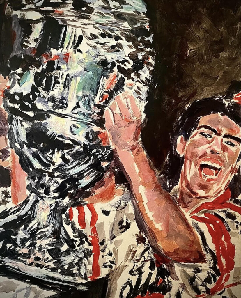 The artist conceives visual practice as a means of mediation between individual memory and collective experience. In this sense, his work positions itself in dialogue between art, sport, visual culture, and the politics of emotion, activating a reflection on the ways in which affect and imagery build community. Painting, printmaking, and other media, for Camilo, become spaces of encounter — places where nostalgia, identity, and gesture come together to shape a shared memory.