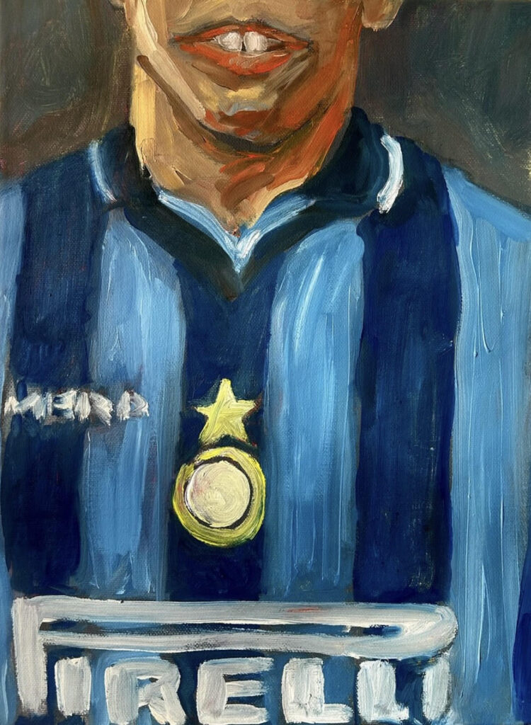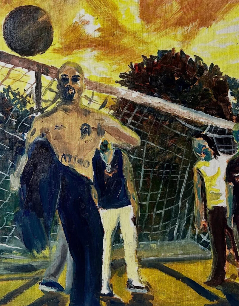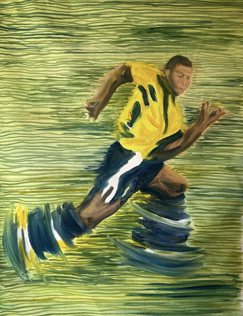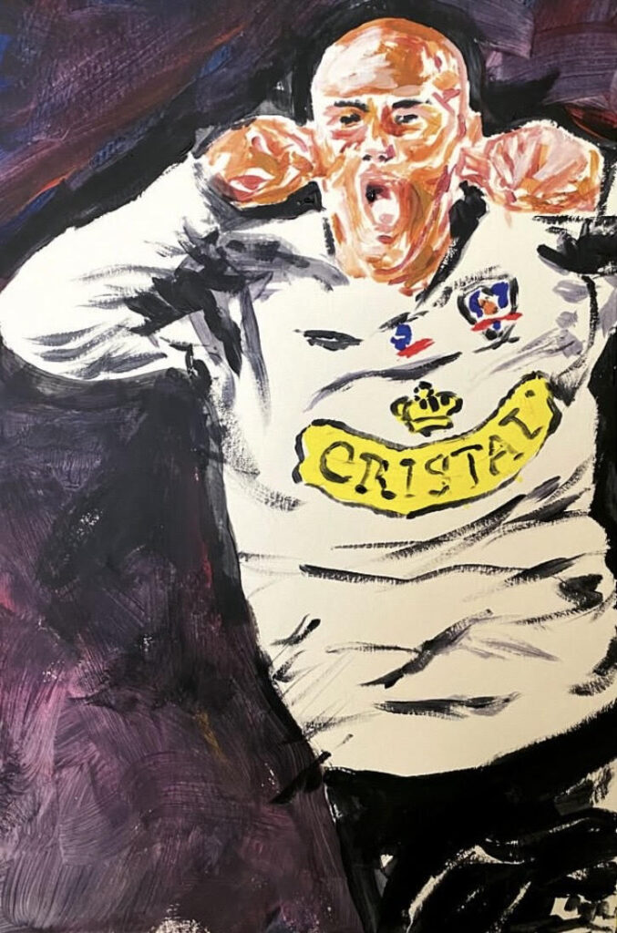 The pictorial work of Camilo Ortiz is rooted in a reflection on the football imaginary as a territory of identity, emotion, and memory. His practice appropriates the visual language of football to explore how this collective phenomenon articulates social, emotional, and cultural narratives. Far from limiting himself to representing the sport, Ortiz approaches football as a symbolic space where bonds of belonging and structures of power are projected, offering a critical perspective on its resonances within popular culture.